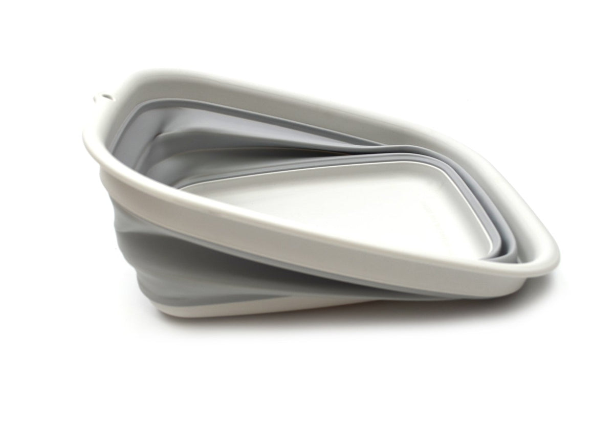 - Q: What are the dimensions of the tub when expanded? A: When expanded, the tub measures 14.6 inches long, 12.6 inches wide, and 5.7 inches high.