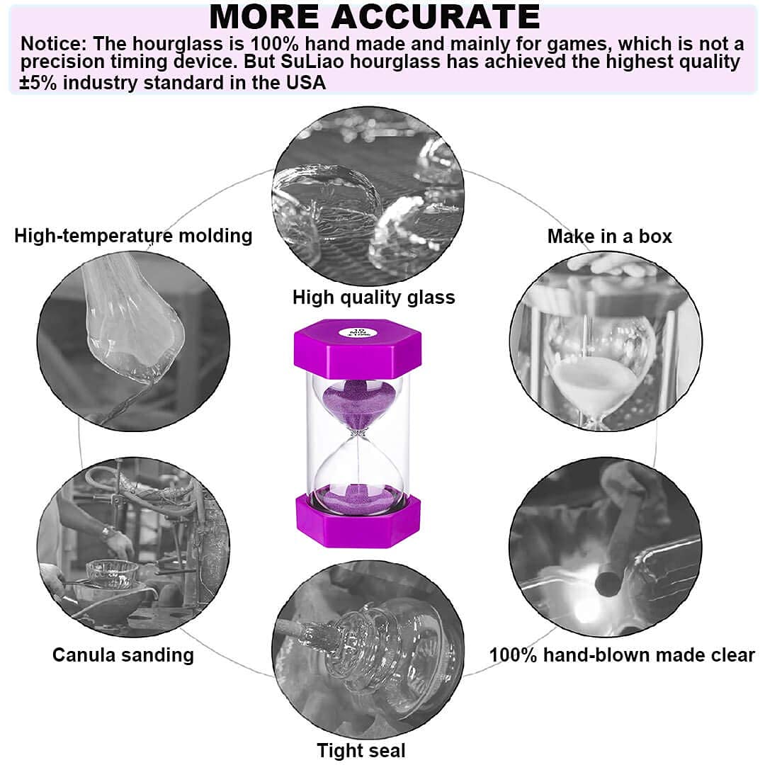 - Q: What is the purpose of the 30-minute sand hourglass timer? A: The 30-minute sand hourglass timer is designed to help users manage time effectively for various activities such as cooking, games, exercising, and educational purposes, especially for children to understand the concept of time.