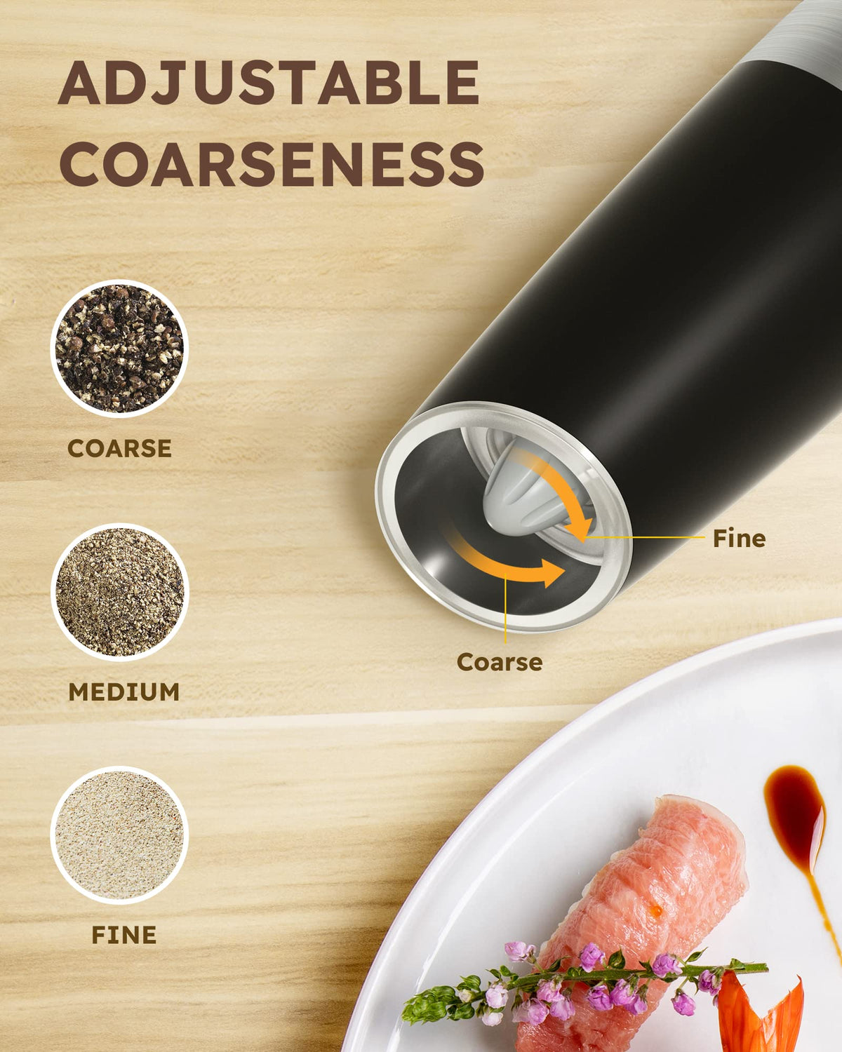 - Q: Can I adjust the coarseness of the spices? A: Yes, the grinder set features an adjustable ceramic grinder knob that allows you to easily change the coarseness of the spices.