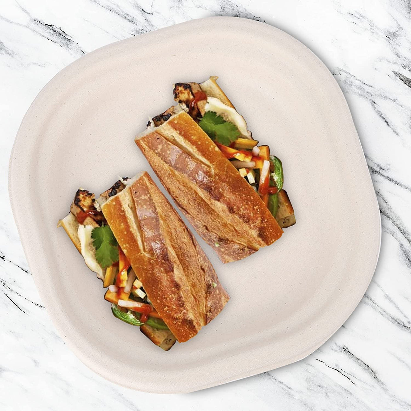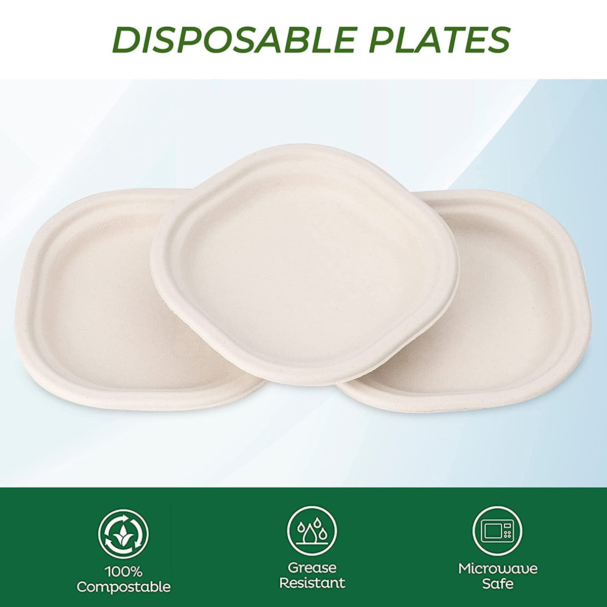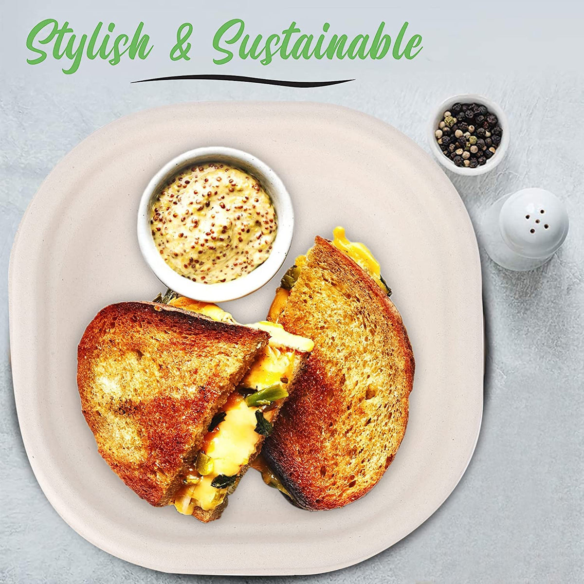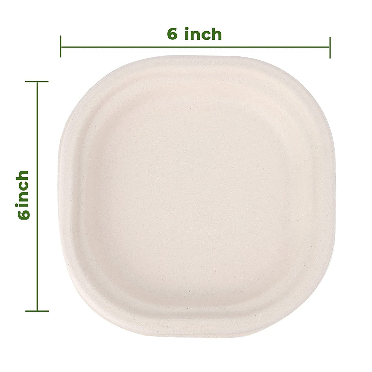 Sanwalsa Disposable Square Bagasse Paper Plates, 6 Inches Diameter, Set Of 25 Pcs - Beige