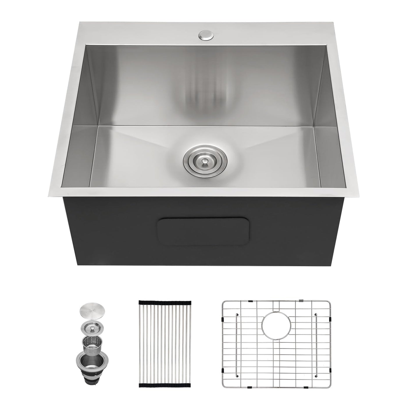 Sarlai 12 Inch Deep Drop In Laundry Sink - 25X 22 Laundry Utility Sink Drop In Topmount Single Bowl 16 Gauge Stainless Steel Abo