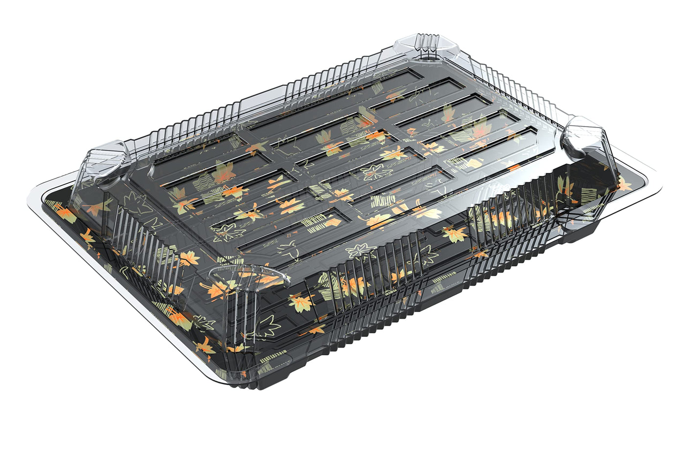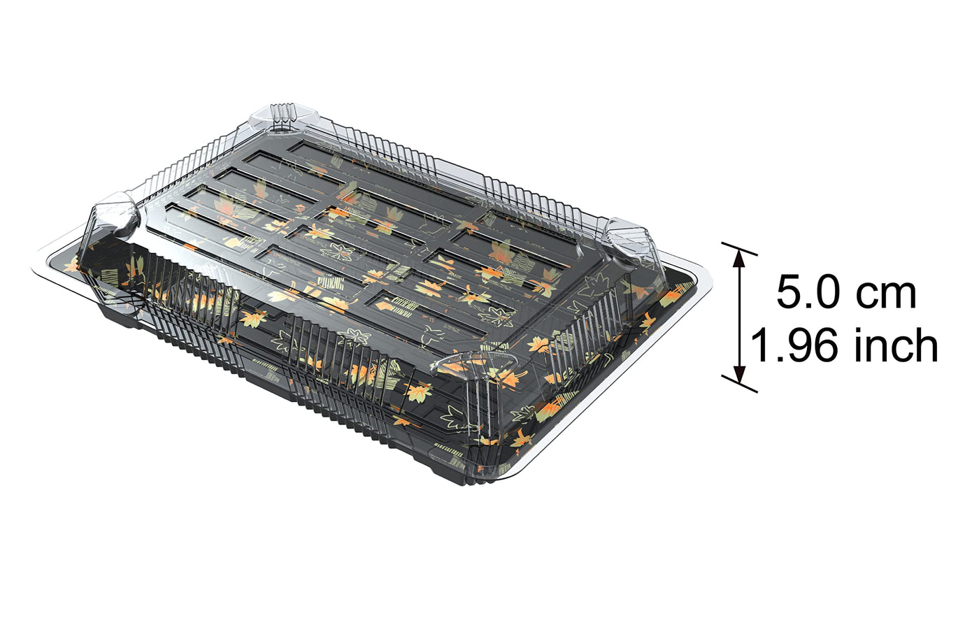 - Q: What design is featured on the sushi tray? A: The tray features a classic maple leaf pattern, which adds an aesthetic appeal to food presentation.