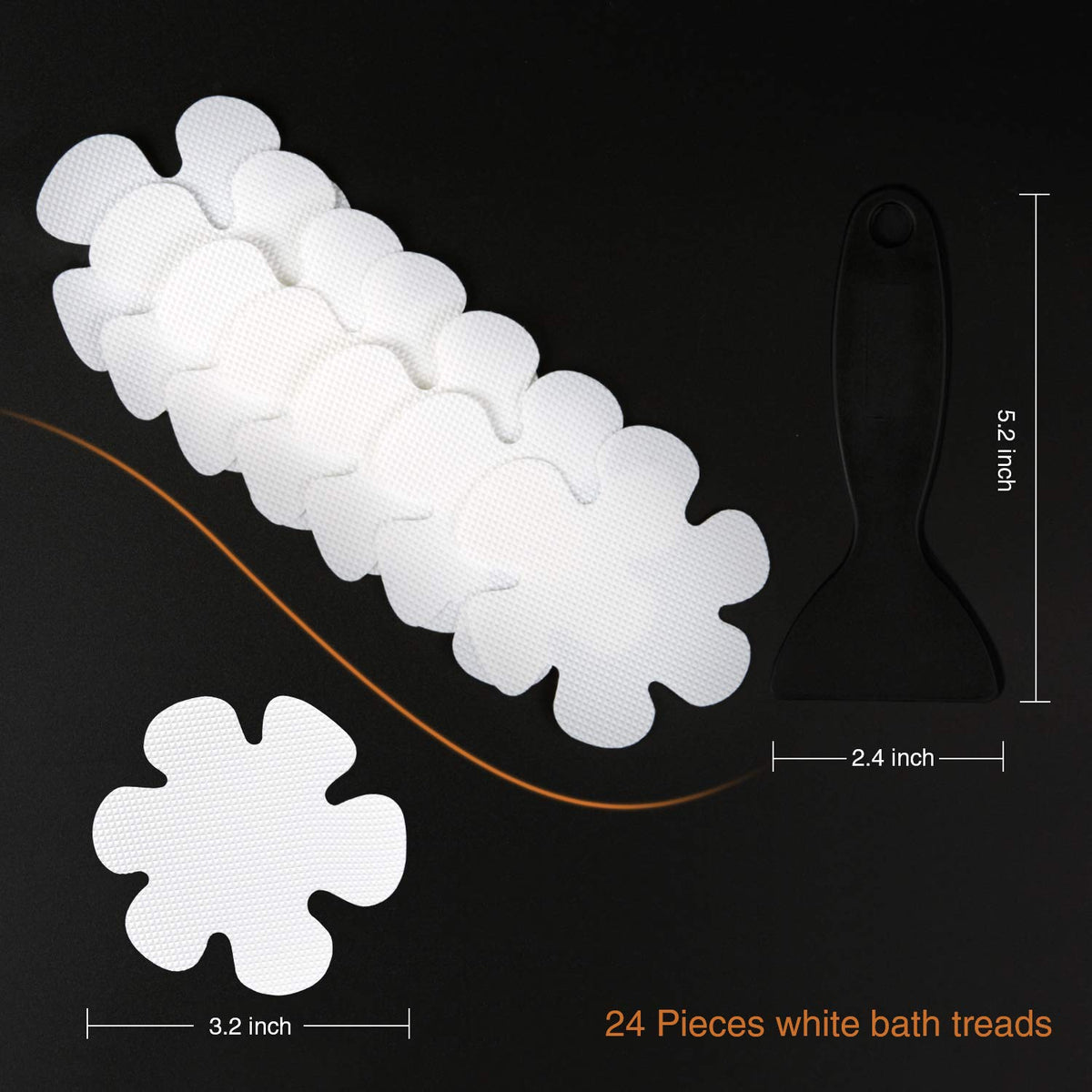 - Q: How many stickers are included in the package? A: The package includes 24 white bath treads and 1 scraper.