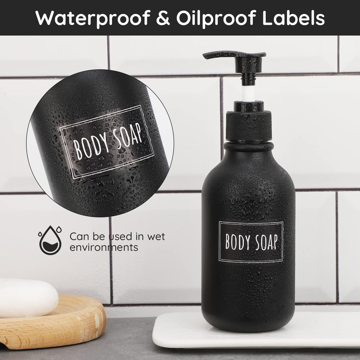 Segbeauty 36Pcs Black Waterproof Labels, Self-Adhesive Bathroom Labels For Organizing, Removable Printed Shampoo Conditioner Bod