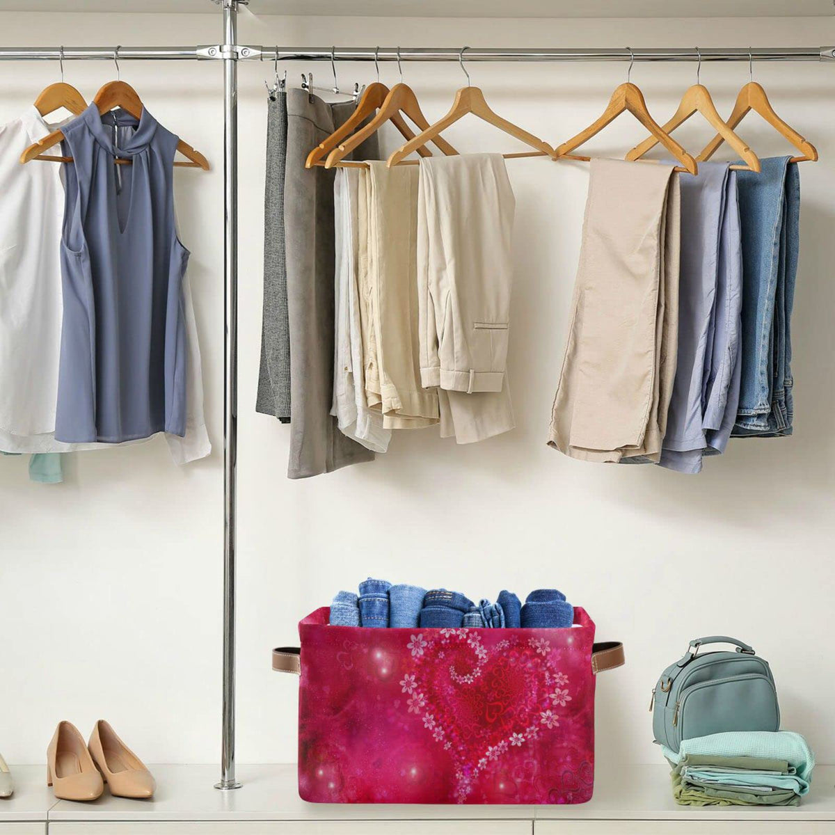 senya Valentine's Day Basket with Handles Valentine's Day Love Heart Foldable Fabric Collapsible Storage Bins Organizer Bag for Storage Clothes one size x1