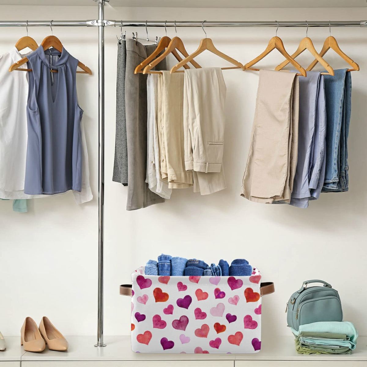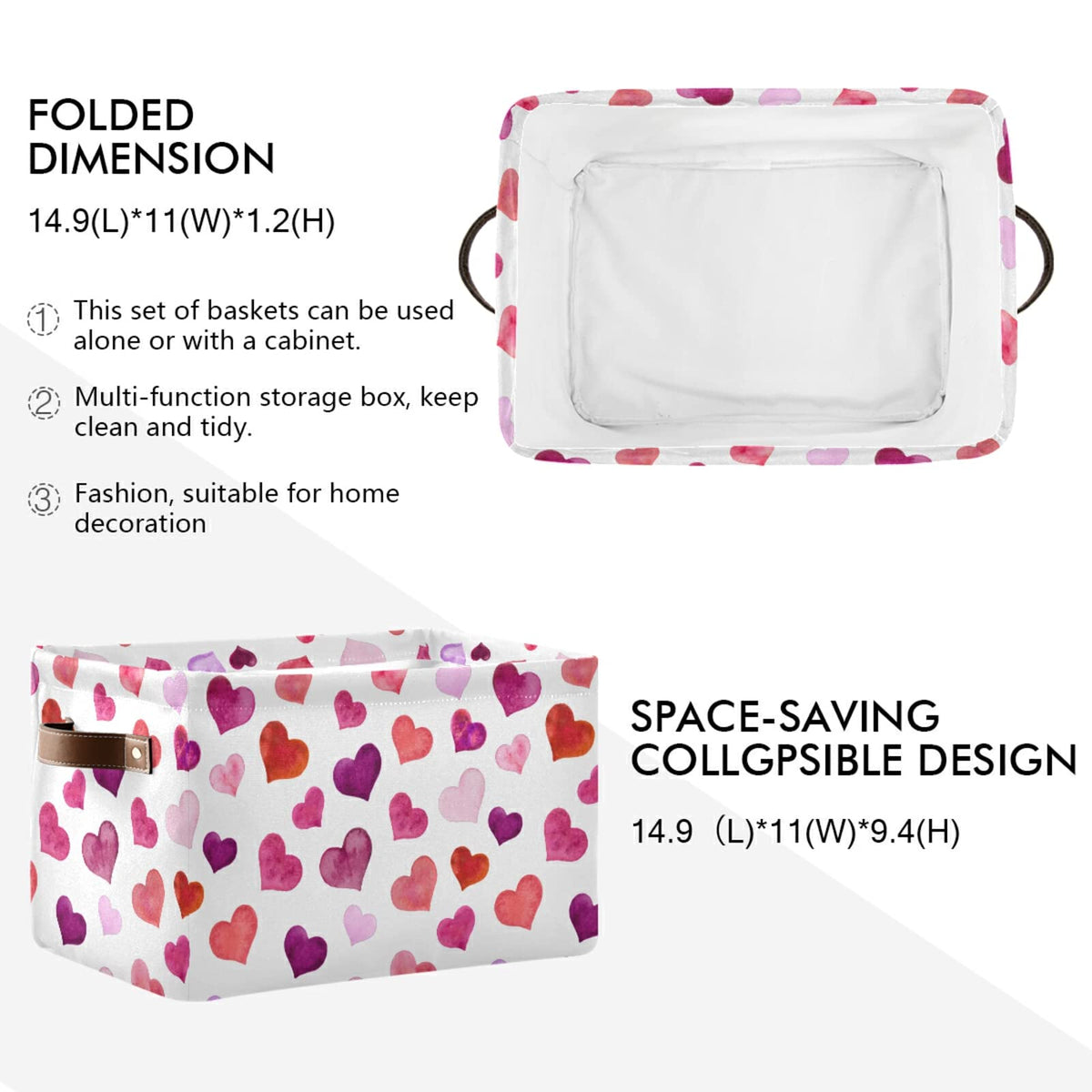 senya Valentine's Day Storage Basket Large Foldable Storage Basket with Handles Pink Love Hearts Fabric Collapsible Storage Bins Organizer Bag for Baby Storage Toy Storage one size x1