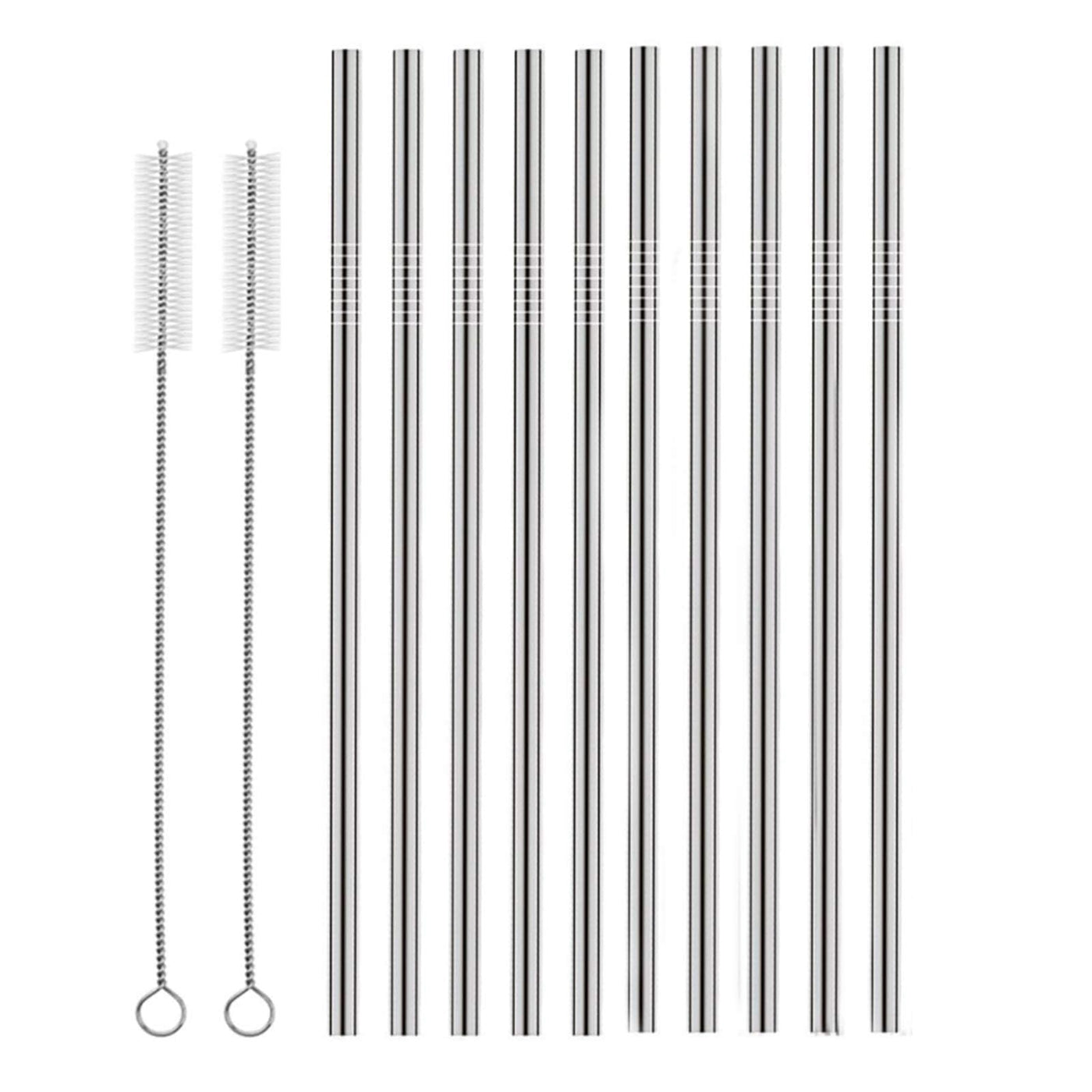 Set Of 10 Stainless Steel Straws, Huaqi Straight Reusable Straight Drinking Straws 10.5'' Long 0.24 Dia For 30 Oz Tumbler And 20