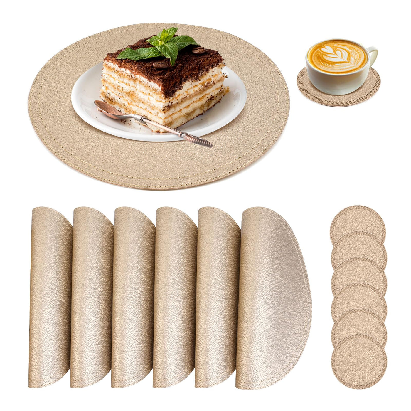 - Q: Are the coasters included in the set also made of the same material? A: Yes, the coasters are made from the same durable faux leather polyester material as the placemats.
