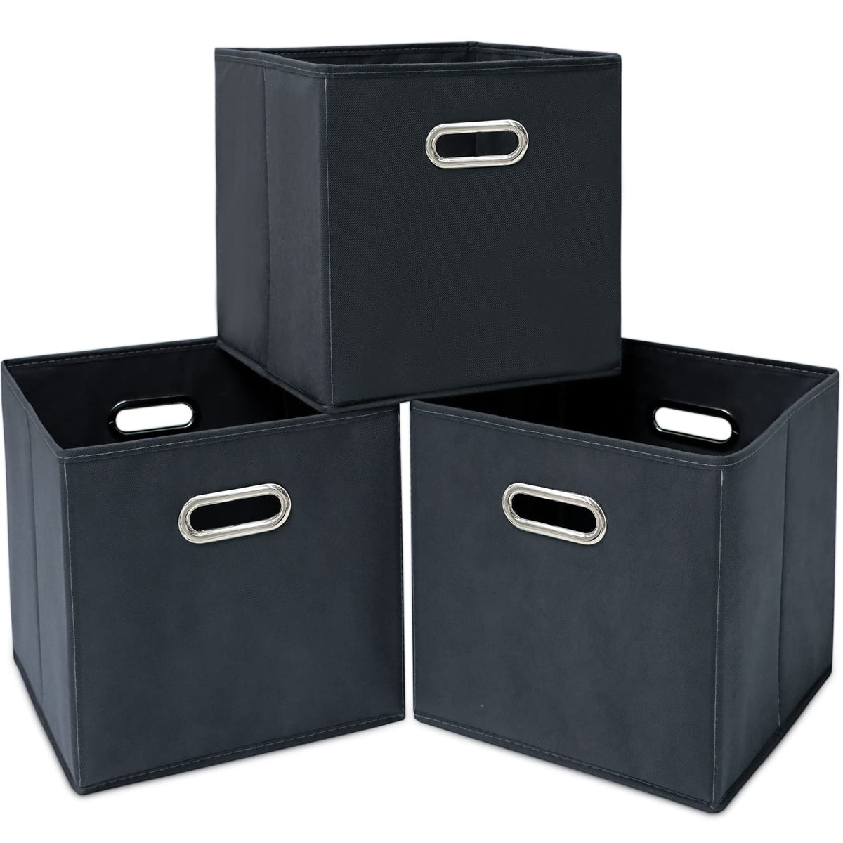 - Q: How many storage bins are included in a set? A: Each set includes 3 foldable fabric storage bins.