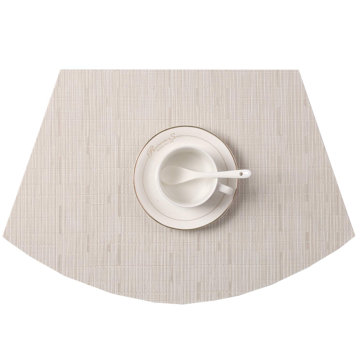 Shacos Placemats For Round Table Set Of 4 Wedge Shaped Placemats Heat Resistant Woven Vinyl Pvc Table Mats Wipeable (4, Beige)