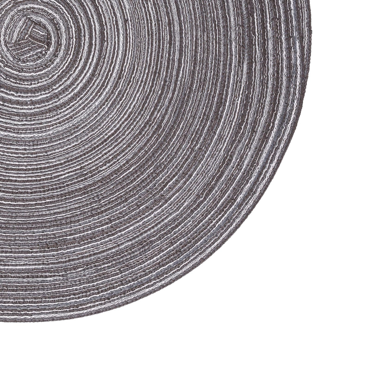 Shacos Round Braided Placemats Set Of 6 Round Table Mats 15 Inch Cotton Washable For Holiday Party (Black Grey, 6)