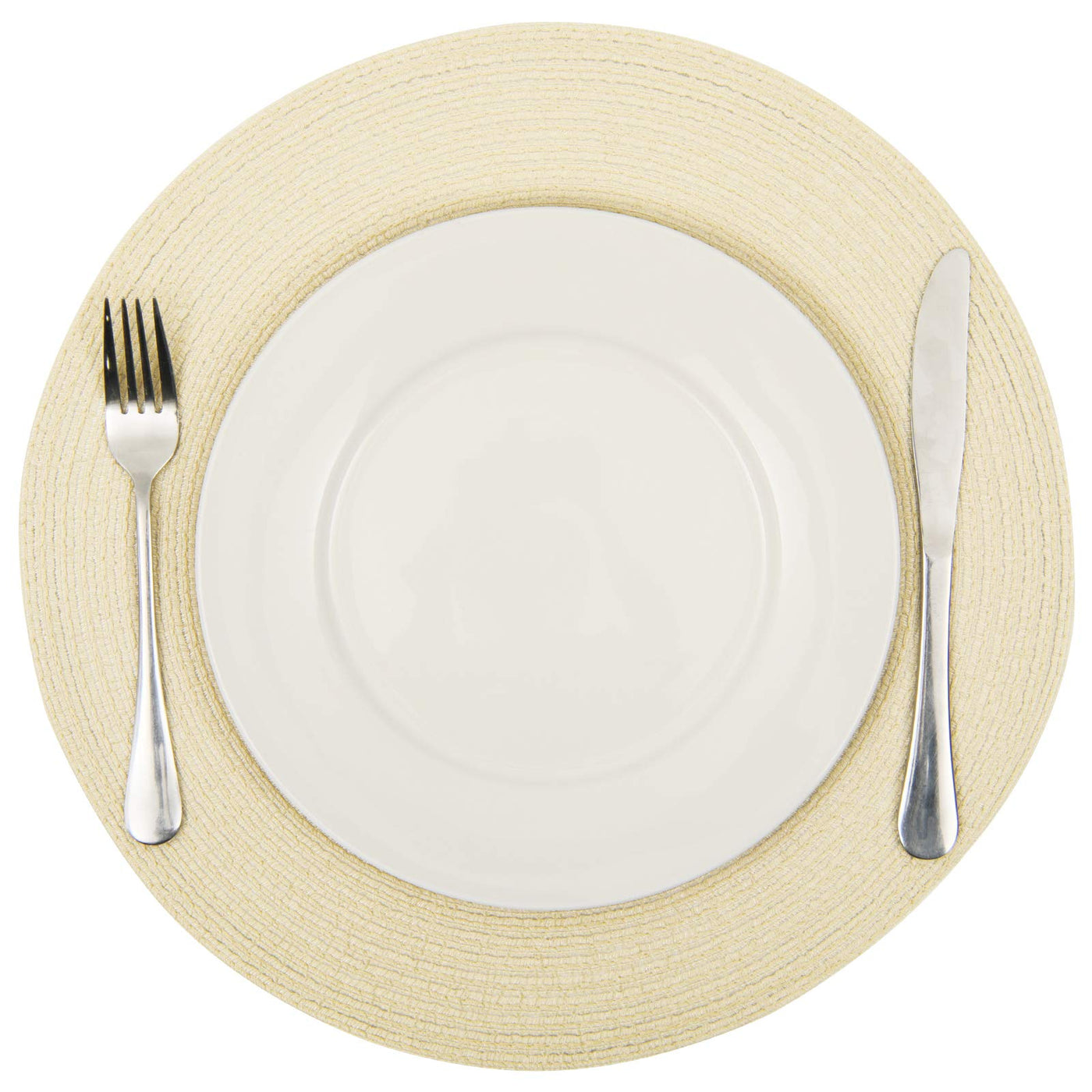 Shacos Round Braided Placemats Set Of 6 Round Table Mats For Dining Tables 15 Inch (Cream, 6)