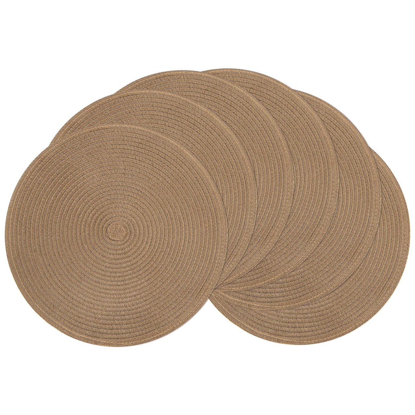 SHACOS Round Braided Placemats Set of 6 Washable Cotton Polyester 15 inch Round Table Place Mat for Dining Table (Brown, 6)
