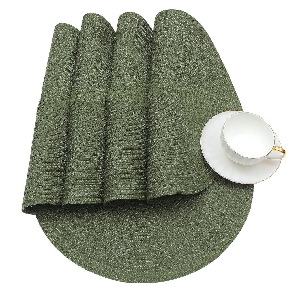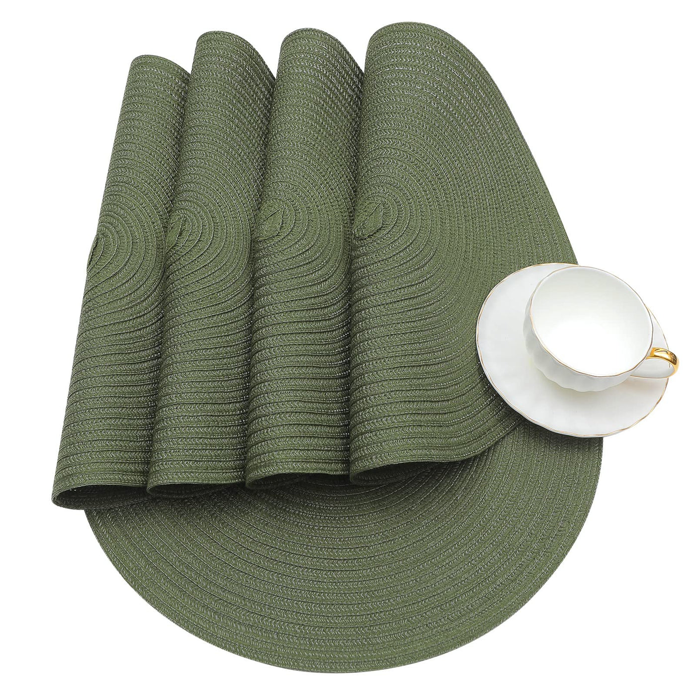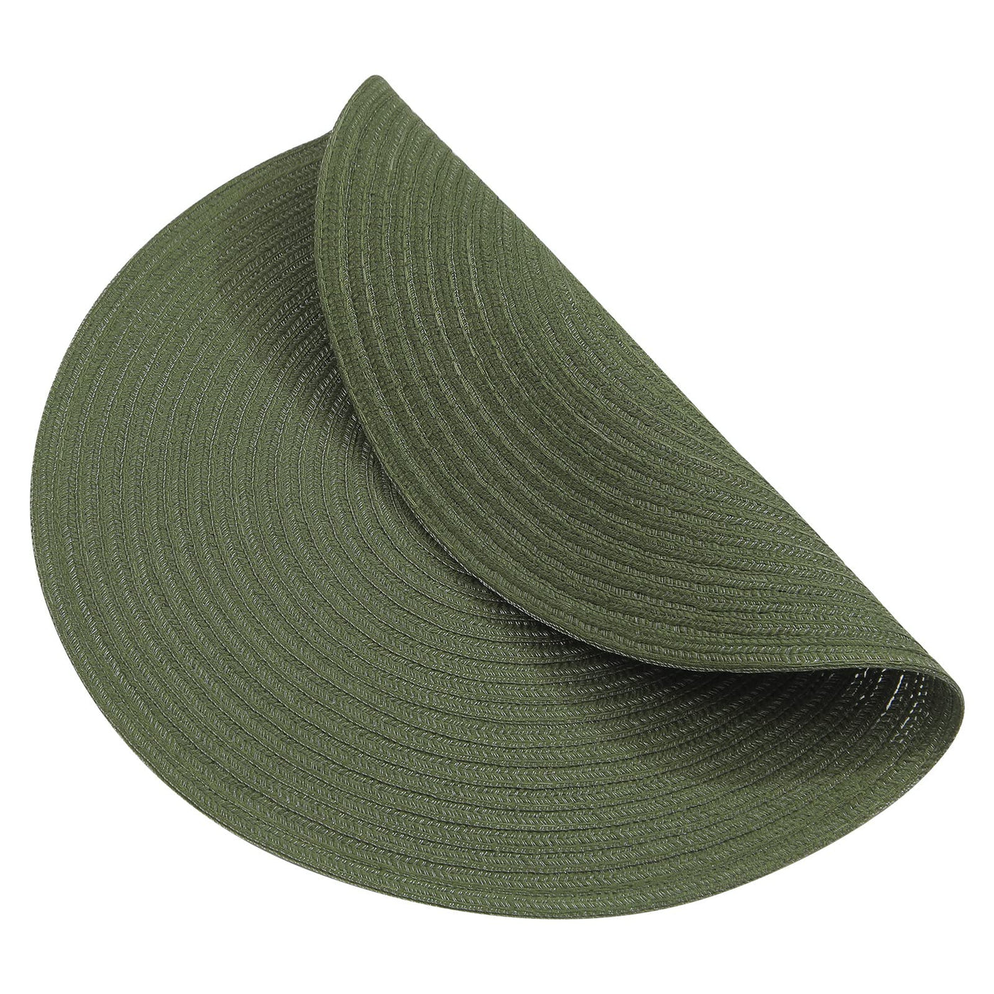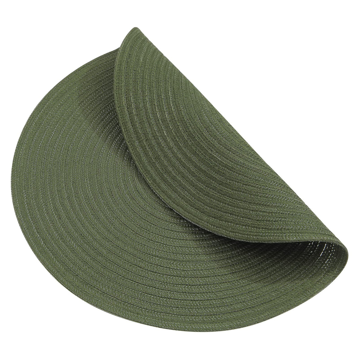 - Q: What colors are available for the SHACOS Round Placemats? A: The SHACOS Round Placemats are available in solid olive green, which adds a stylish touch to your table decor.