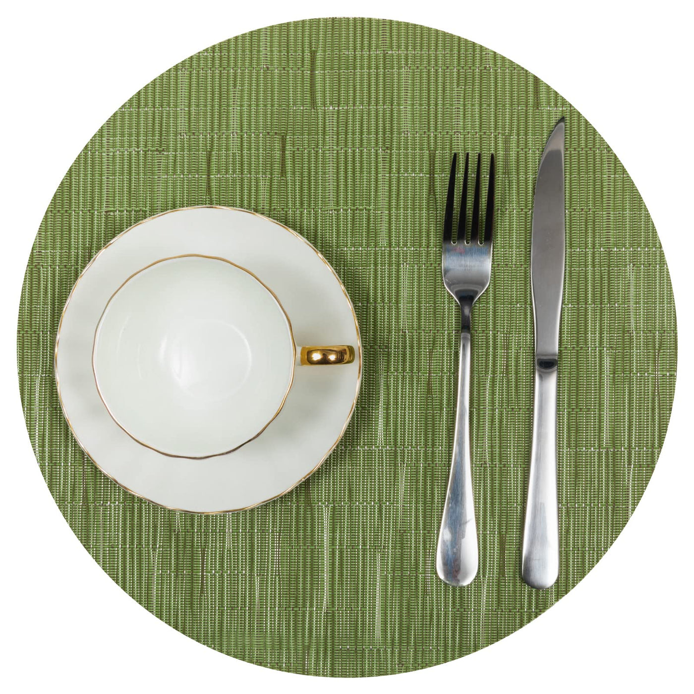 Shacos Round Table Placemats Set Of 7 Wedge Placemat With Centerpiece Round Mat Heat Resistant Table Mats Wipe Clean (7, Green)