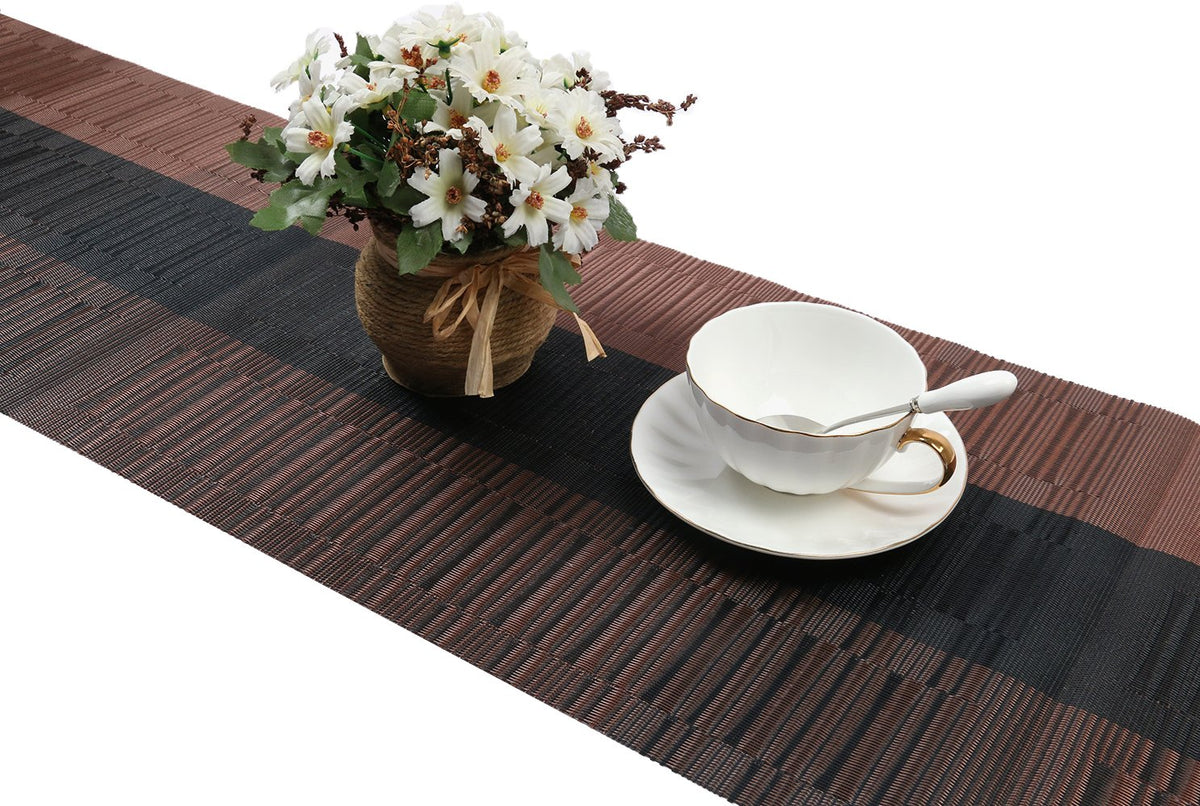 Shacos Table Runners Woven Vinyl Table Mats 12X54 Inch For Kitchen Dining Table Non Slip Washable, Ombre Coffee Black