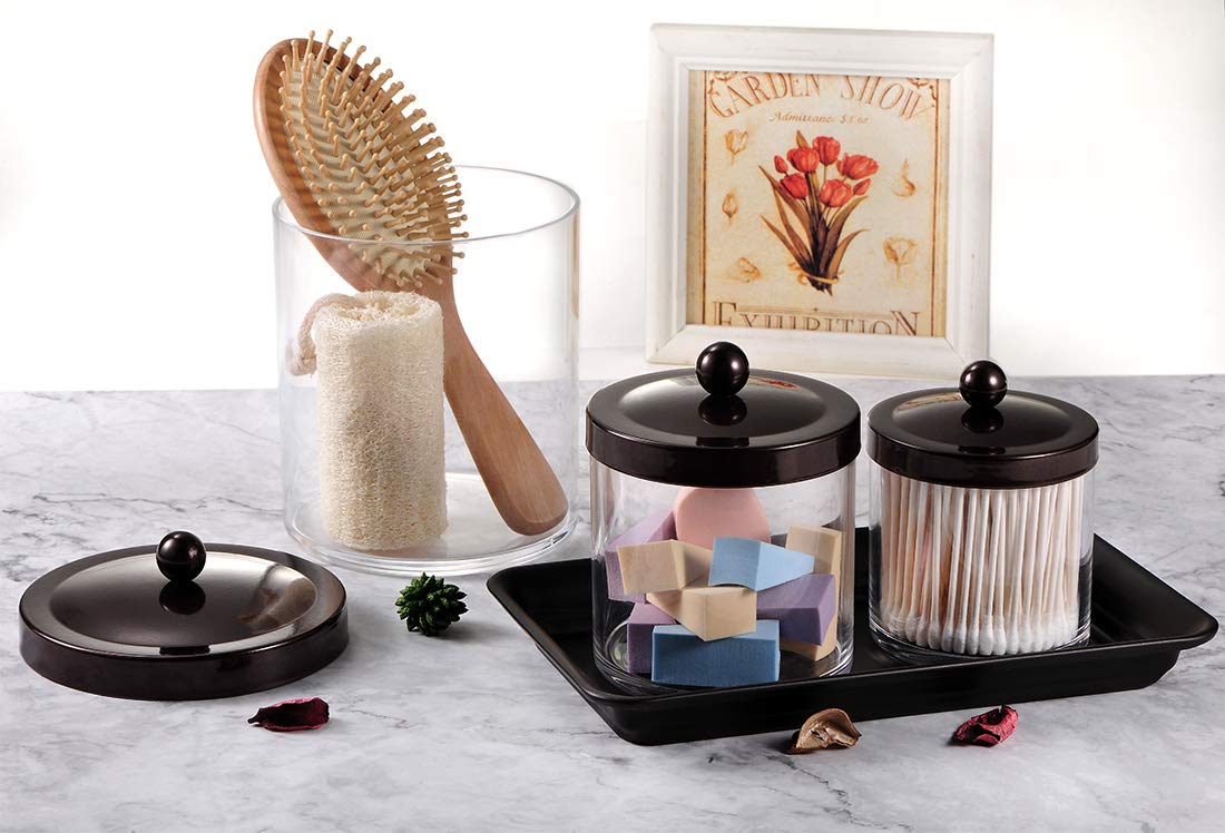 Sheechung Premium Quality Apothecary Jars - Clear Plastic Storage Jars With Rust Proof Stainless Steel Lids - Bathroom Vanity Co