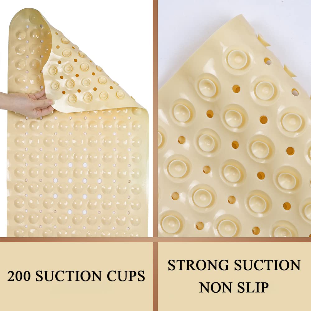 - Q: How many suction cups does the mat have? A: The mat features 200 big suction cups, designed to securely grip smooth and clean tub surfaces.
