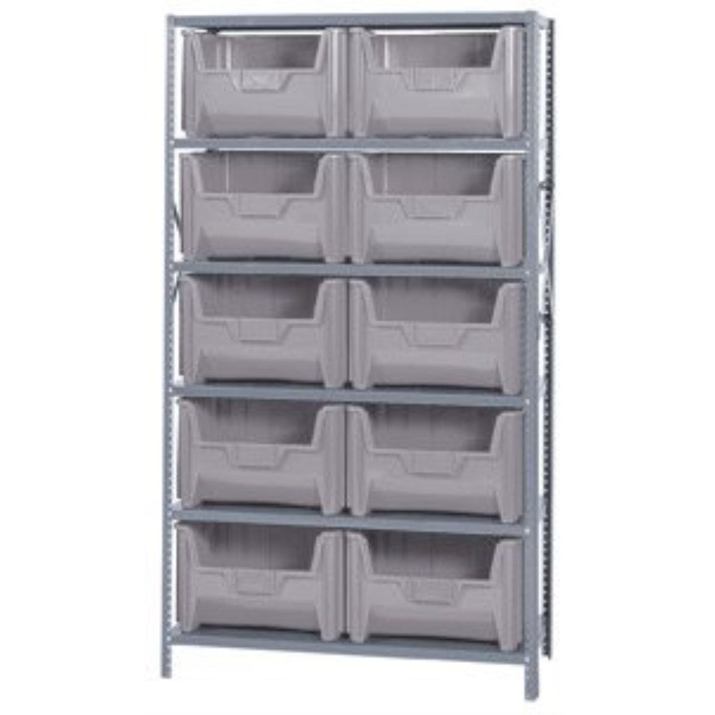 • Q: Are the Giant Stack Bins included with the shelving unit? A: Yes, the unit comes with 10 Giant Stack Bins featuring open hopper fronts for easy access.