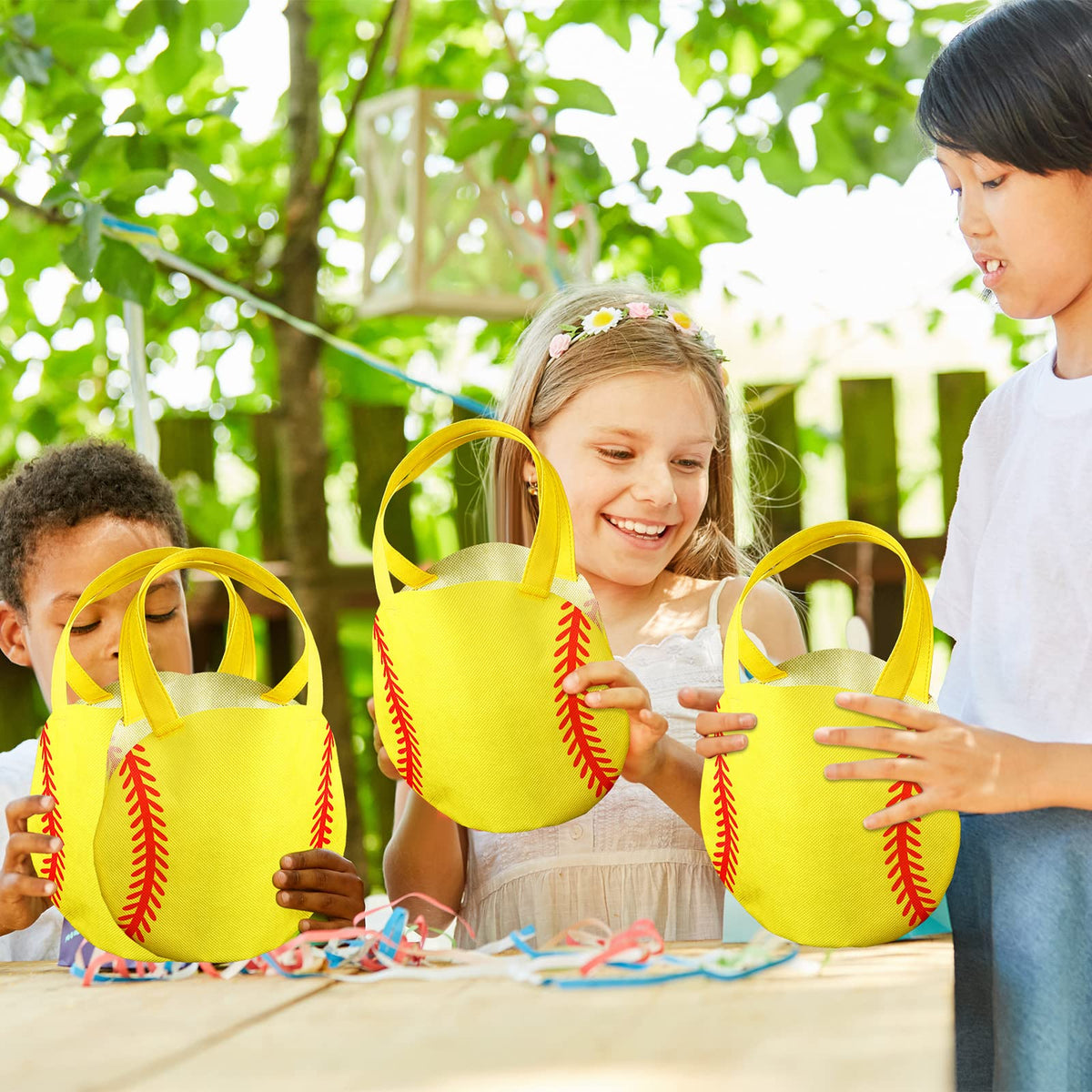 Shihanee 24 Pcs Softball Party Favor Bags Ball Themed Party Goody Candy Bags Sport Game Treat Handbags Softball Non Woven Gift H