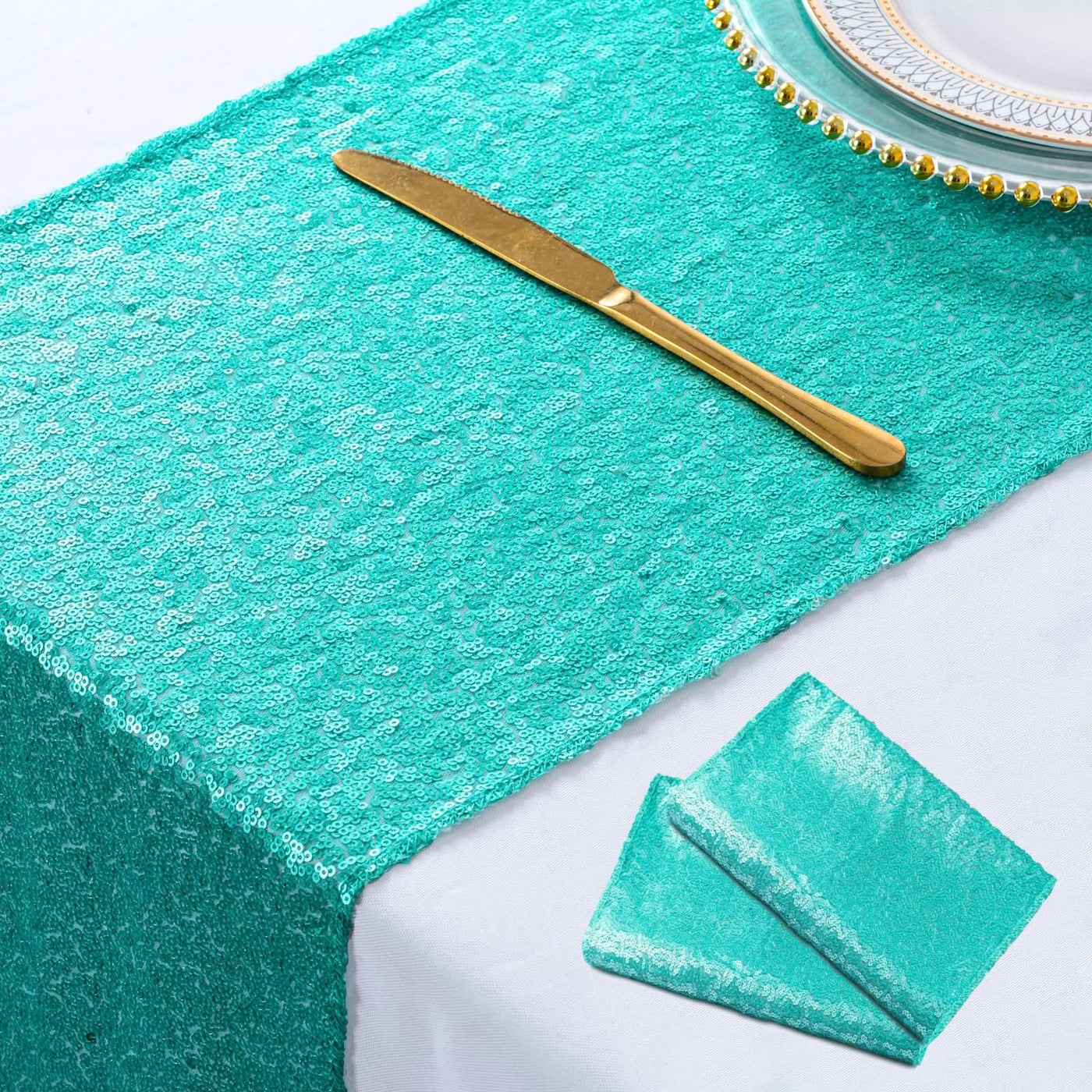 Shinybeauty Wedding Decor Sequin Table Runner 2Pcs Mint Green-12X72-Inch Party Runners For Table, Dining Table Runners Christmas