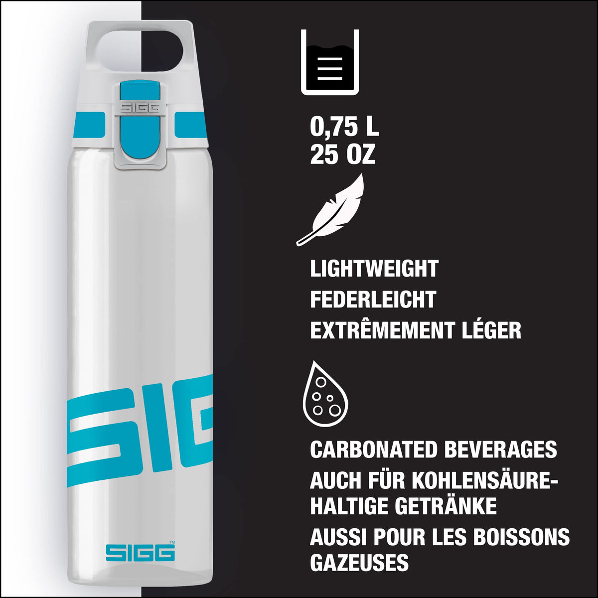 SIGG - Tritan Water Bottle - Total Clear ONE Aqua - Suitable For Carbonated Beverages - Dishwasher Safe - Leakproof - Lightweight - Scratch Resistant - BPA Free - 25 oz