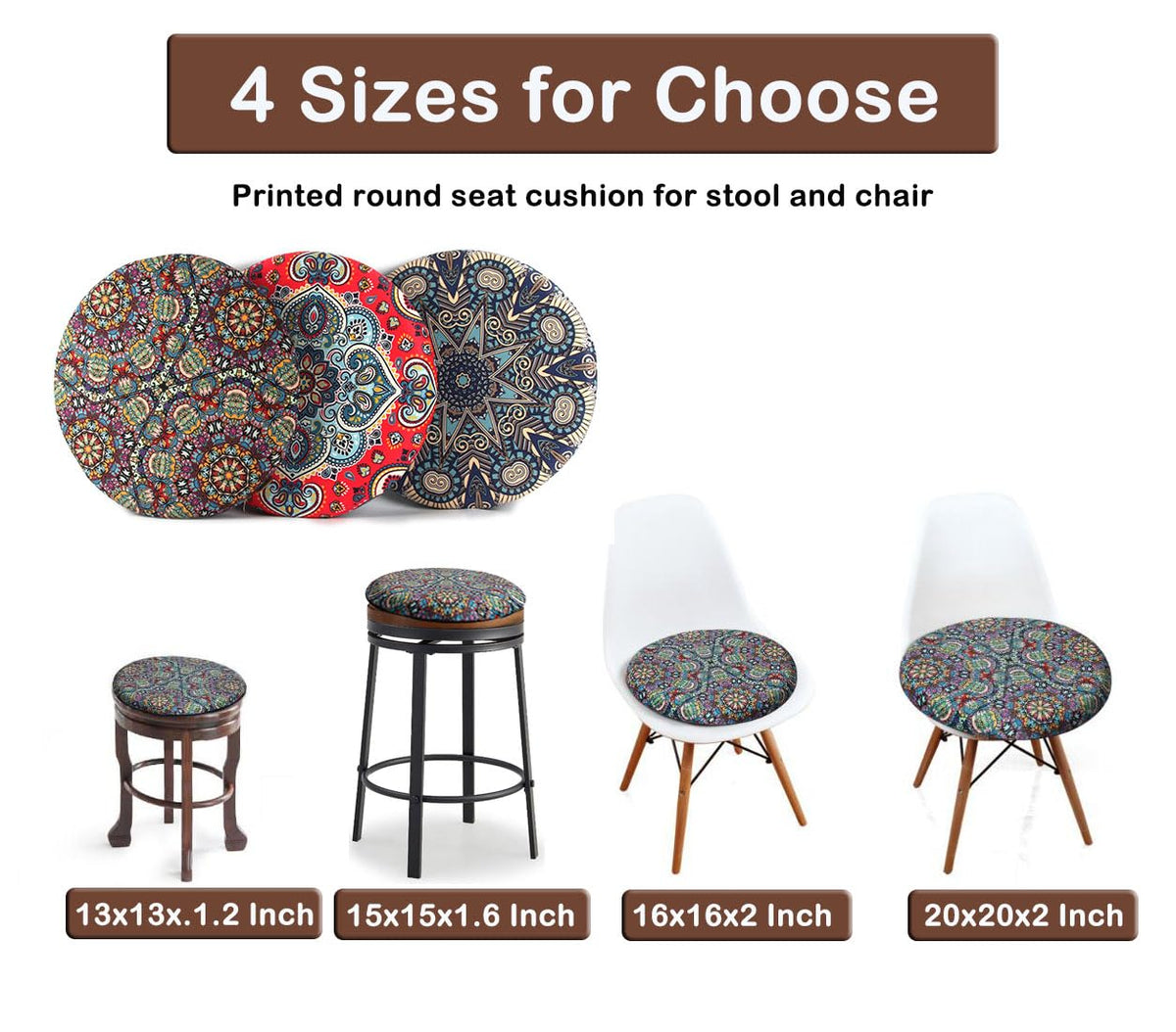 Sigmat Memory Foam Seat Cushion Anti-Slip Soft Round Stool Cushion Chair Pad 16 Inch Graphic