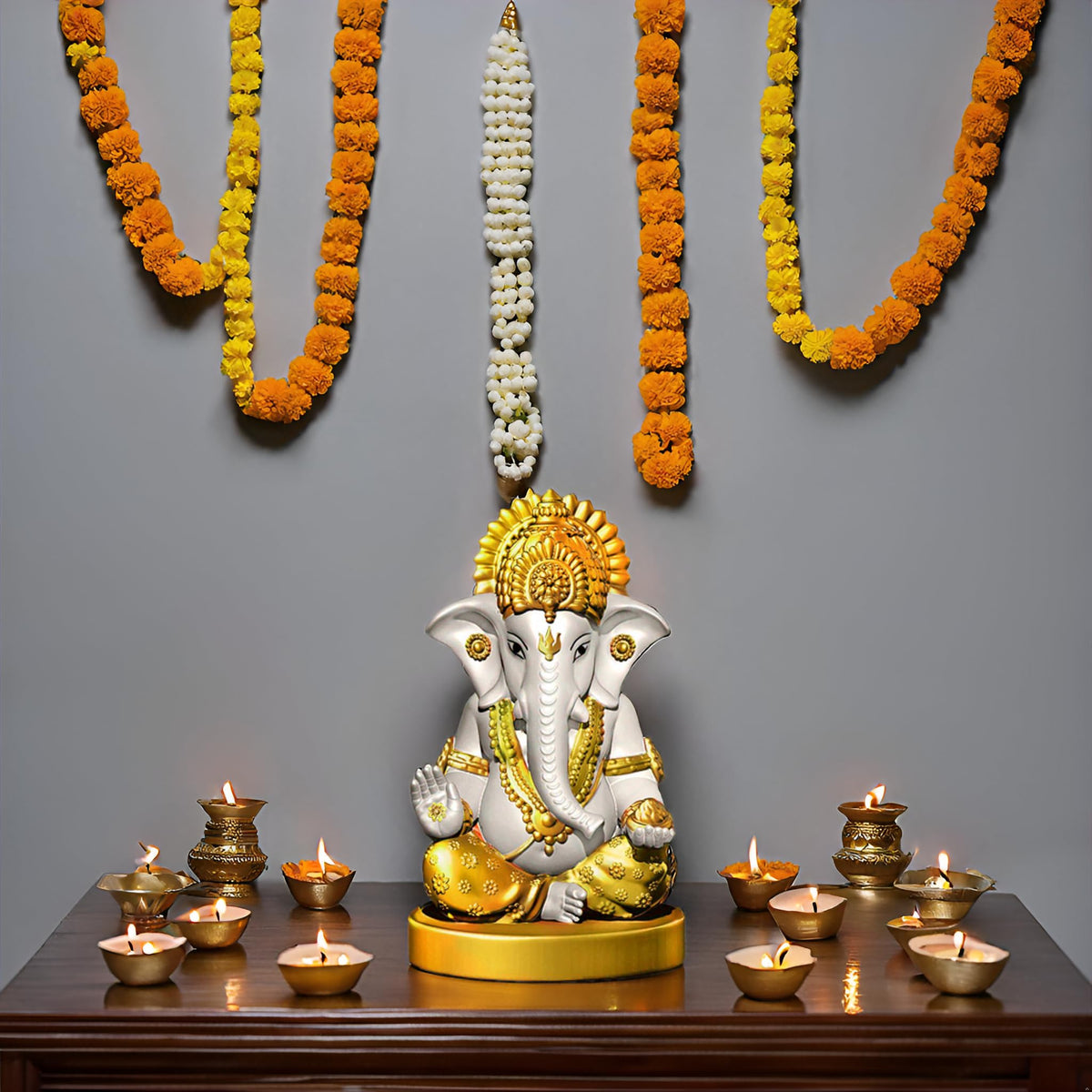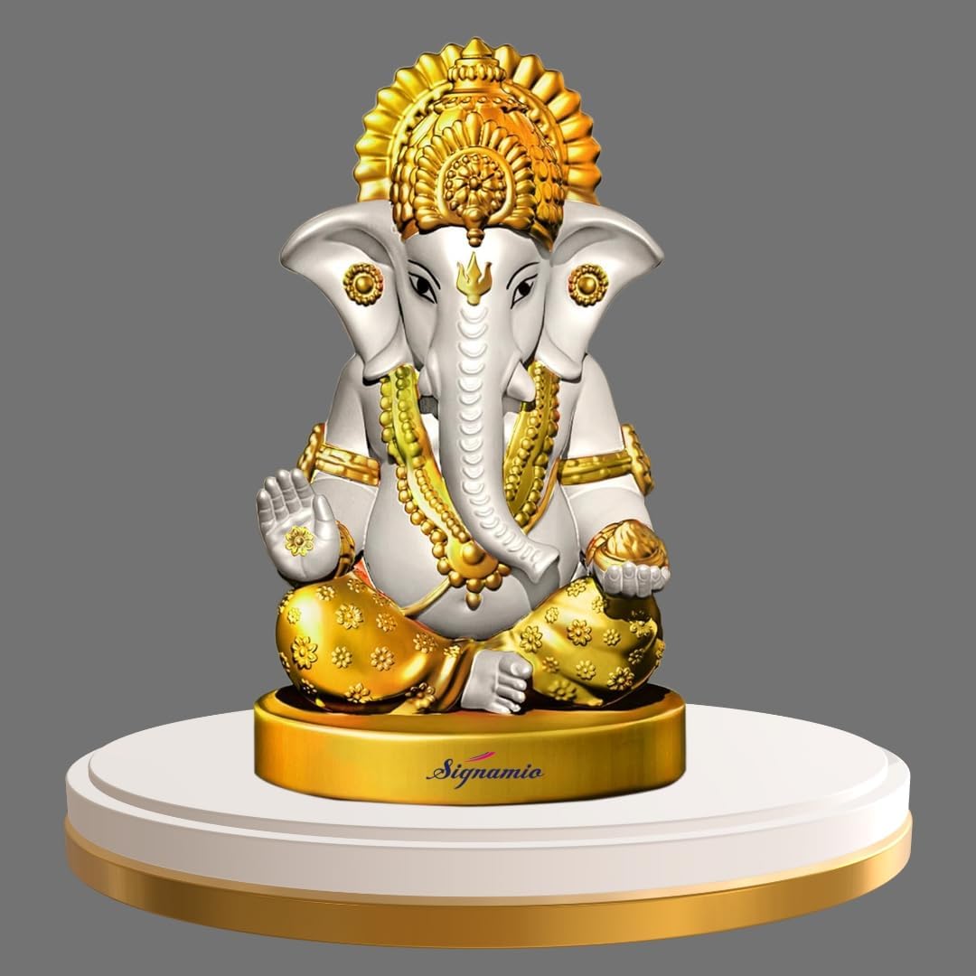 Signamio Handcrafted White Ganesha Idol For Car Dashboard Item: Ganesh Ji, Ganpati Bappa Murti For Home Decor - Exquisite Car Go