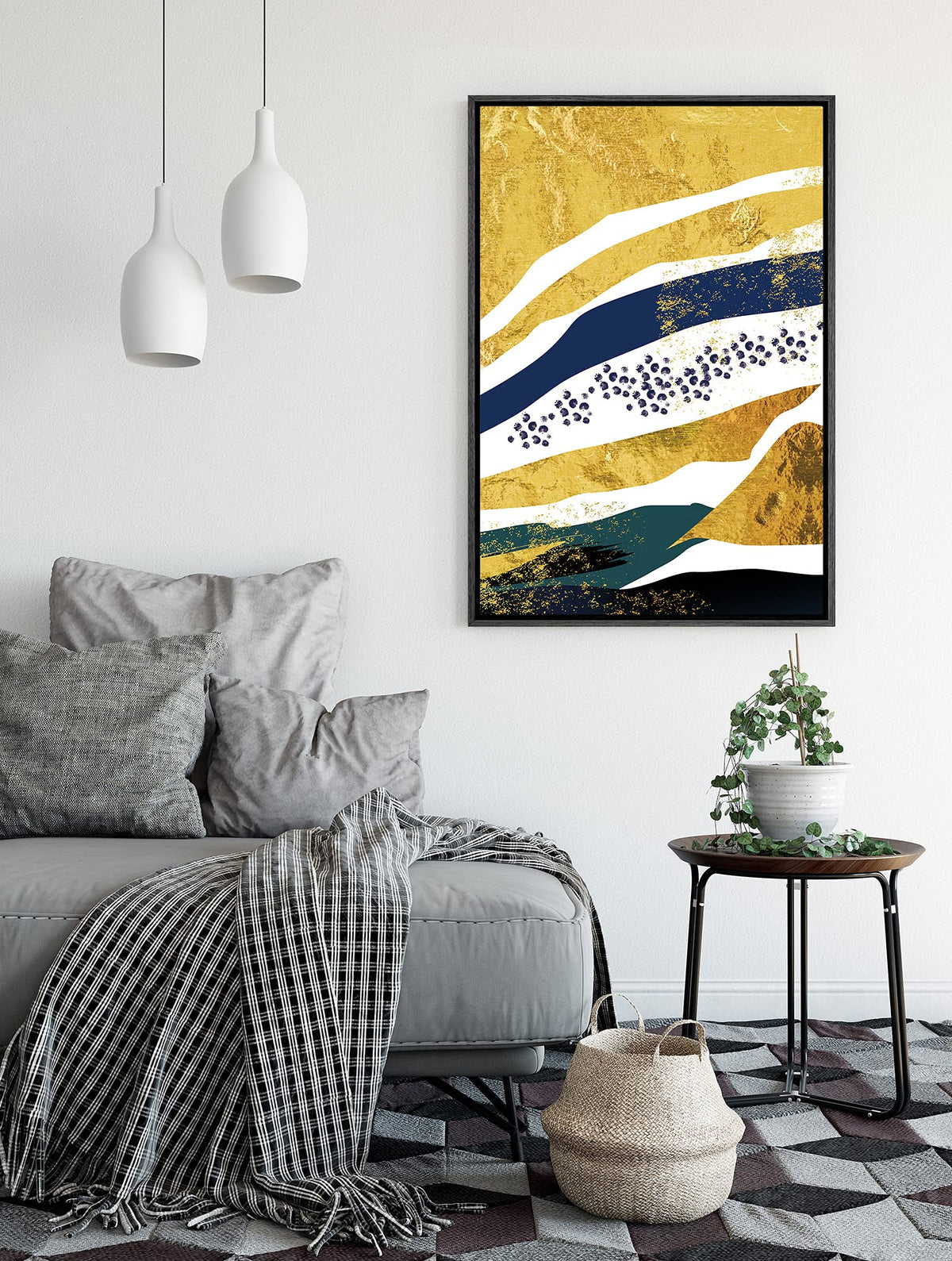 Signford Canvas Print Wall Art Gold Foil Blots With Black & Blue Strokes Abstract Shapes Illustrations Modern Art Alternative Co