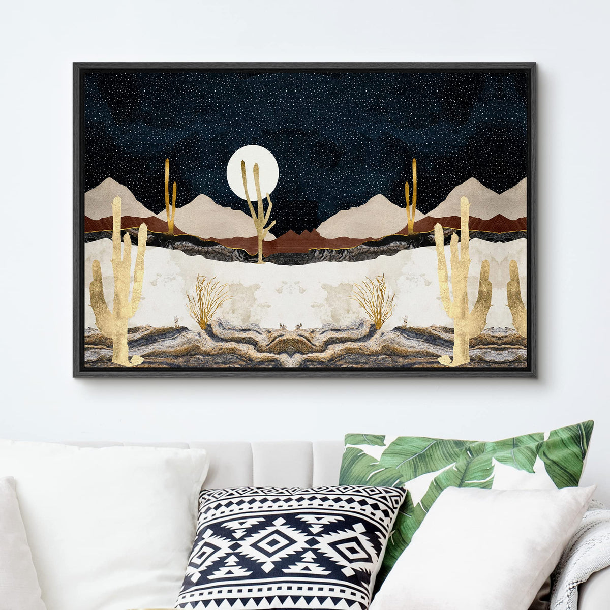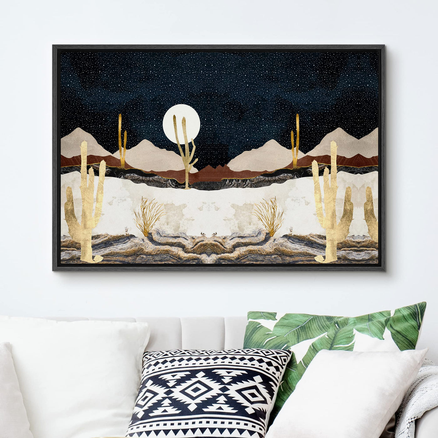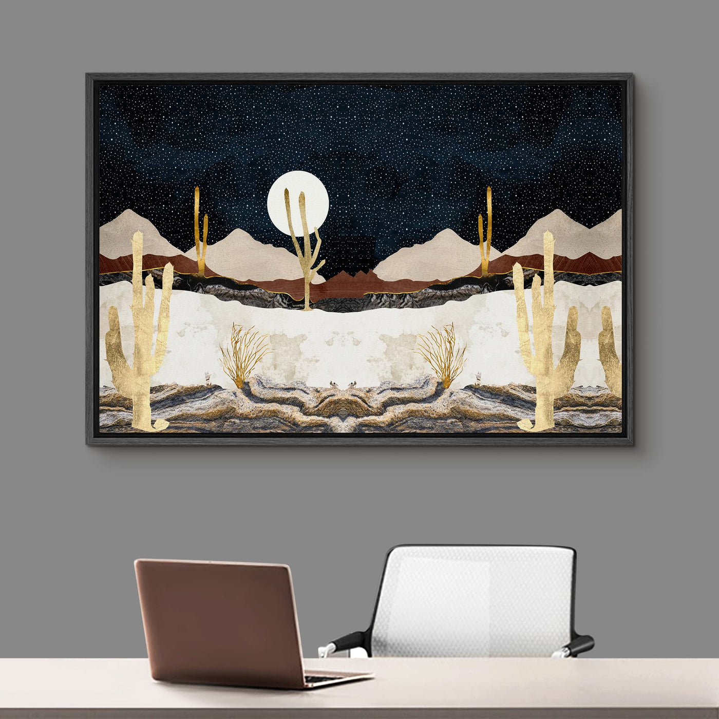 Signford Framed Canvas Print Wall Art Marble Effect Desert Landscape At Night Abstract Wilderness Illustrations Modern Art Rusti