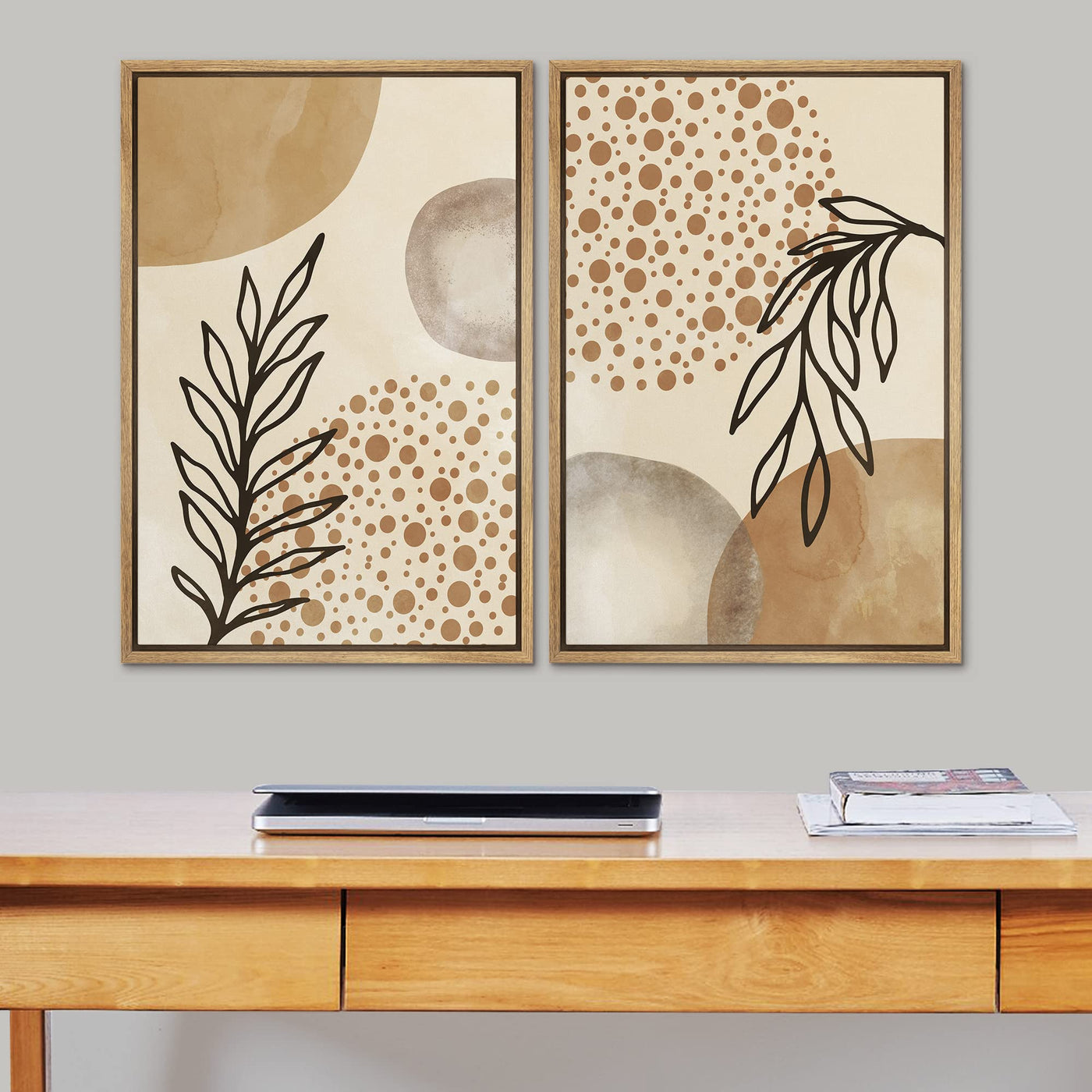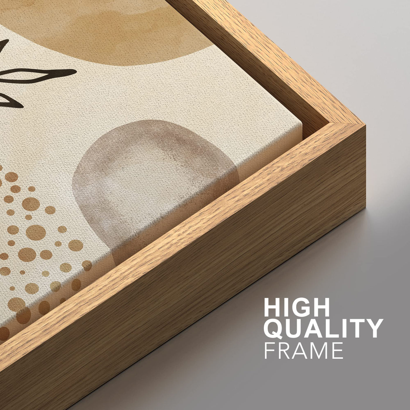 Signford Framed Canvas Print Wall Art Set Mid-Century Forest Plant Leaf Gold Circles Abstract Shapes Illustrations Modern Art De