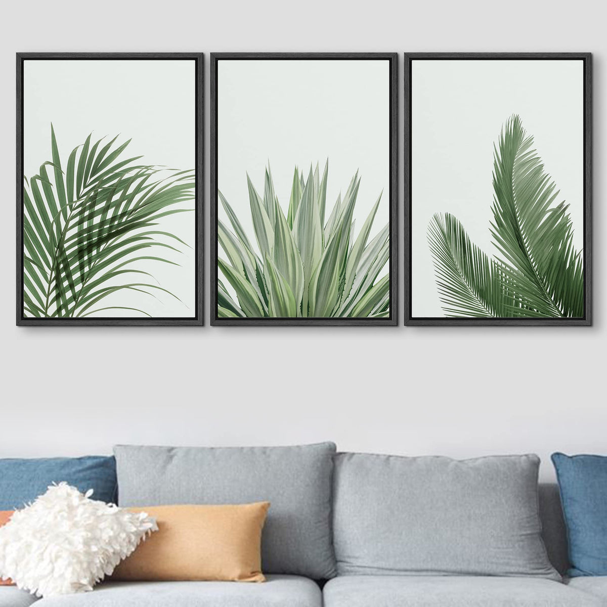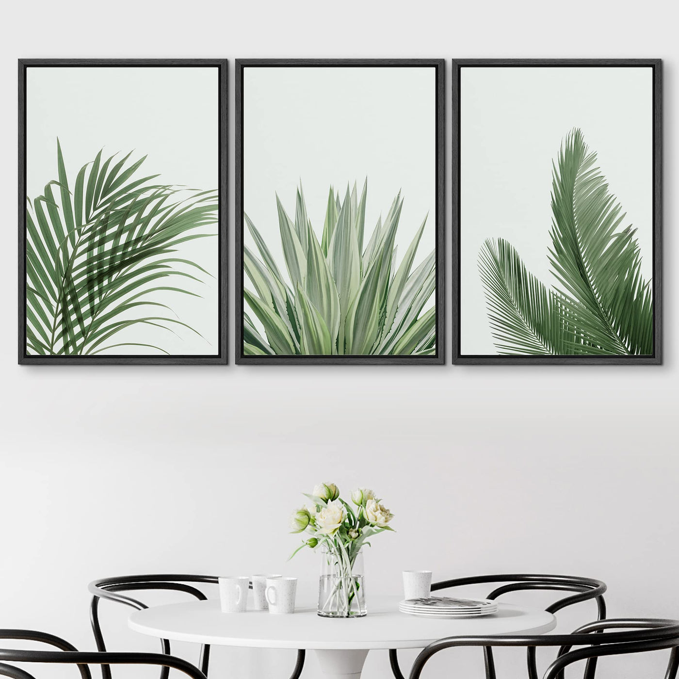 Signford Framed Canvas Print Wall Art Set Rustic Green Retro Tropical Jungle Plants Nature Wilderness Photography Modern Minimal