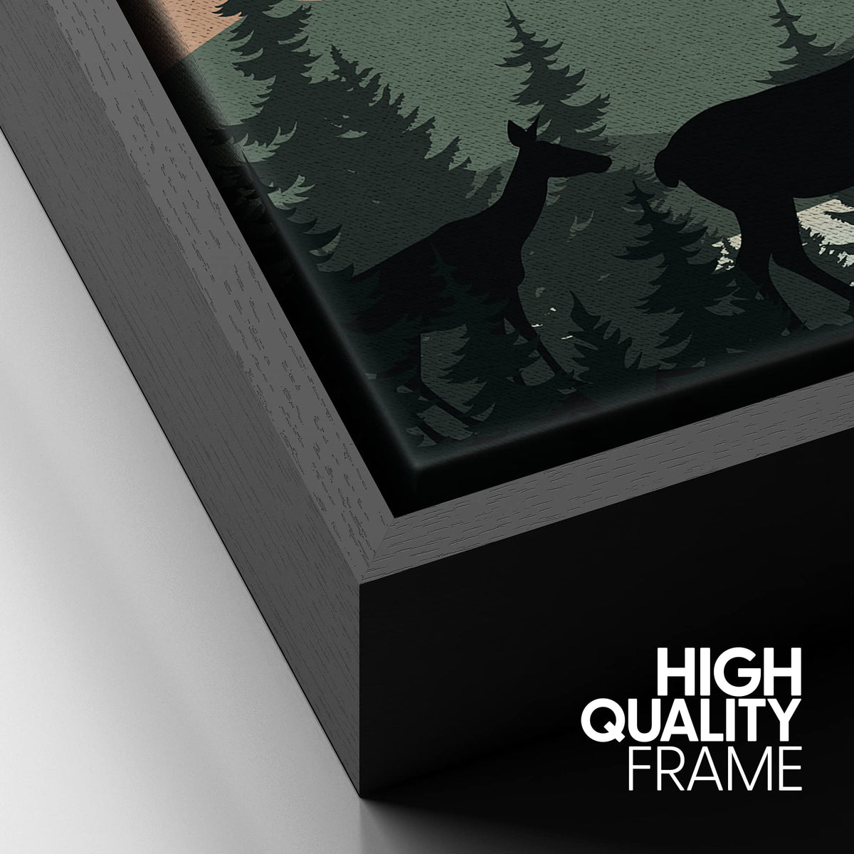 Signford Framed Canvas Print Wall Art Woodland Nursery Decor Sunlight Mountain Pine Forest Lake Nature Wilderness Modern Art Dec