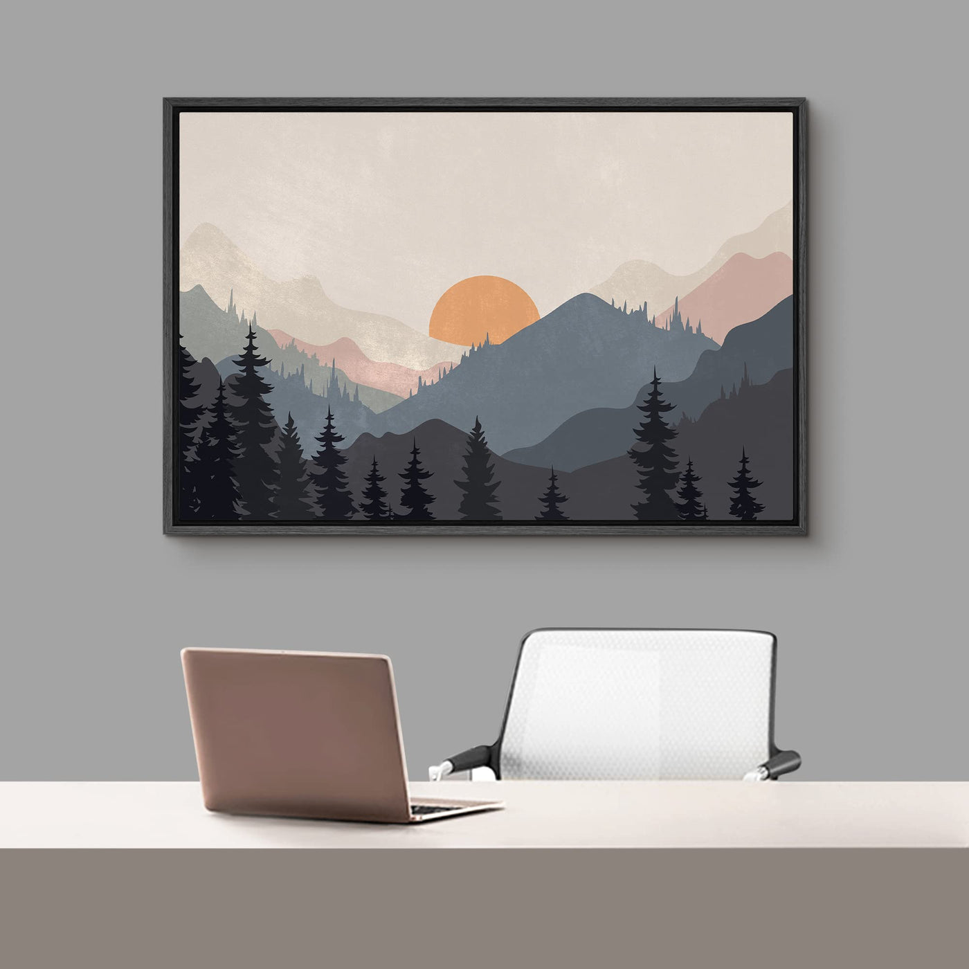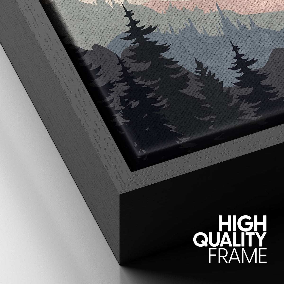 Signford Framed Canvas Print Wall Art Woodland Nursery Decor Sunrise Pastel Mountain River Nature Wilderness Modern Art Decorati