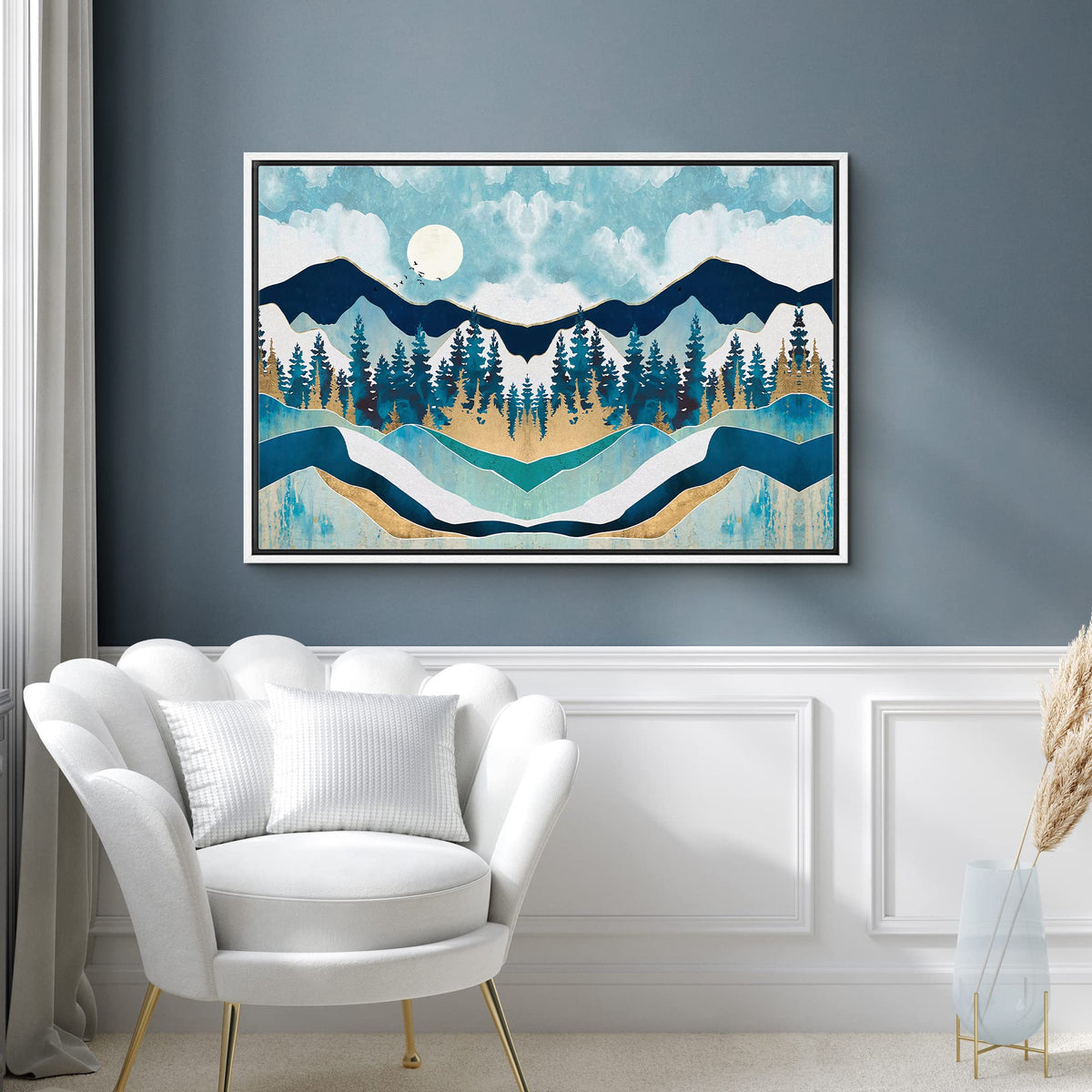 Signford Framed Canvas Print Wall Art Woodland Nursery Decor Symmetrical Teal & Blue Forest & Mountains Abstract Wilderness Mode