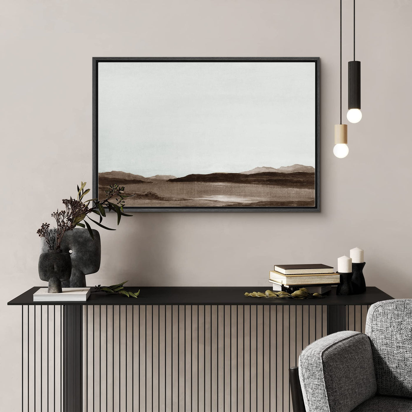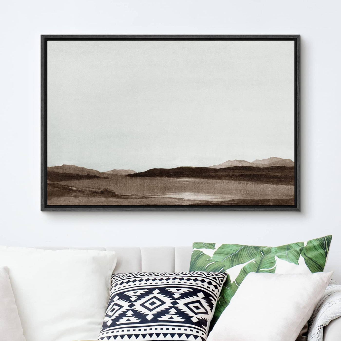 Signford Framed Canvas Wall Art Monochromatic Brown Mountains And Valleys Landscape Wilderness Oil Painting Impressionism Tradit