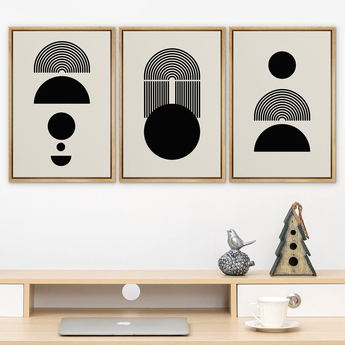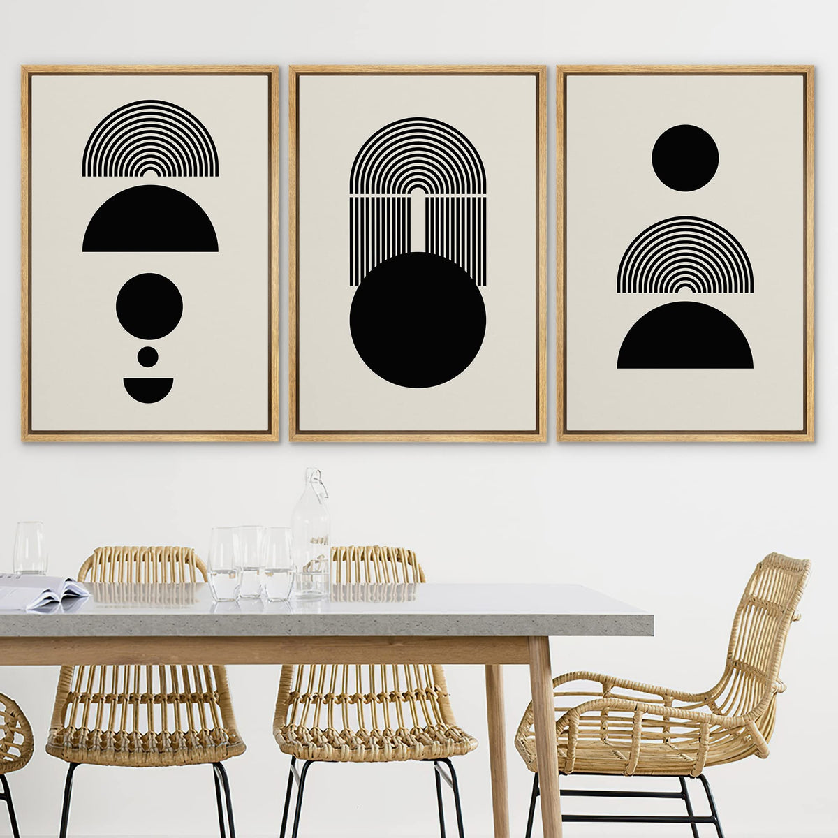 Signleader Framed Canvas Print Wall Art Solid & Spiral Semi-Circles Geometric Shapes Drawings Modern Art Contemporary Edgy Black