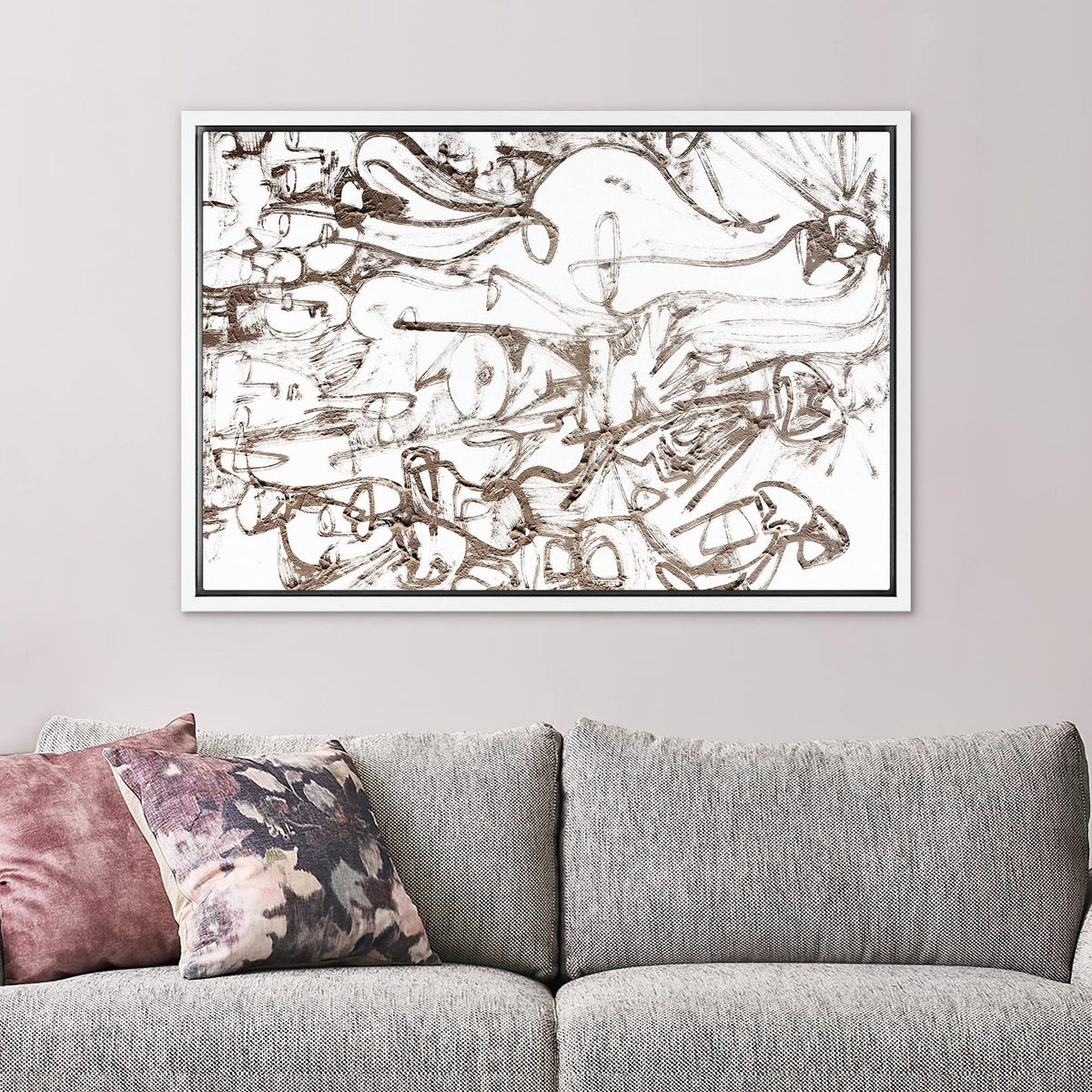- Q: What type of artwork is featured in this print? A: The SIGNWIN Framed Canvas Print features a brown paint stroke graffiti landscape with abstract geometric illustrations, embodying a modern art minimalism style.