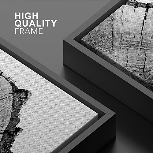 Signwin Framed Canvas Print Wall Art Detailed Wood Rings Of Tree Nature Wilderness Photography Realism Rustic Dramatic Grey Blac