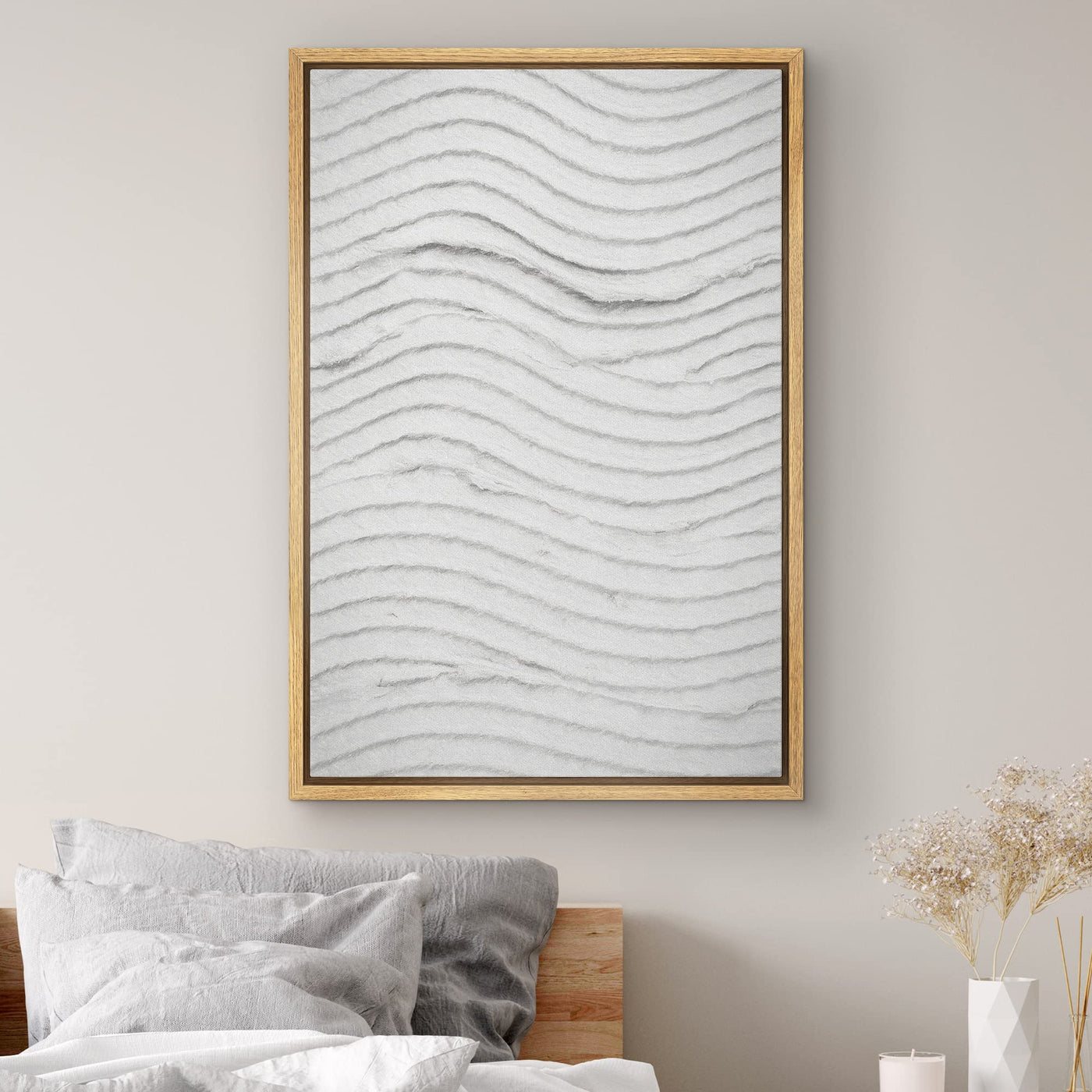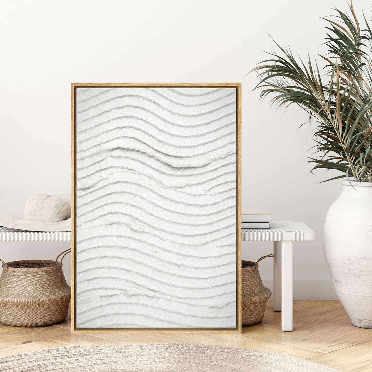 Signwin Framed Canvas Print Wall Art Grunge White Gray Minimal Wave Collage Abstract Shapes Digital Art Modern Art Decorative El