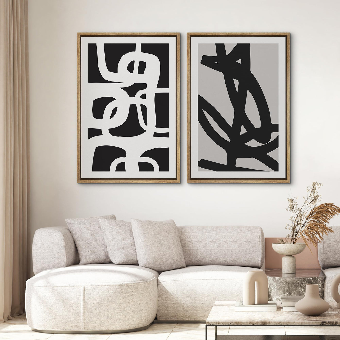 Signwin Framed Canvas Print Wall Art Set Black White Geometric Dark Ring Collage Abstract Shapes Illustrations Modern Art Minima