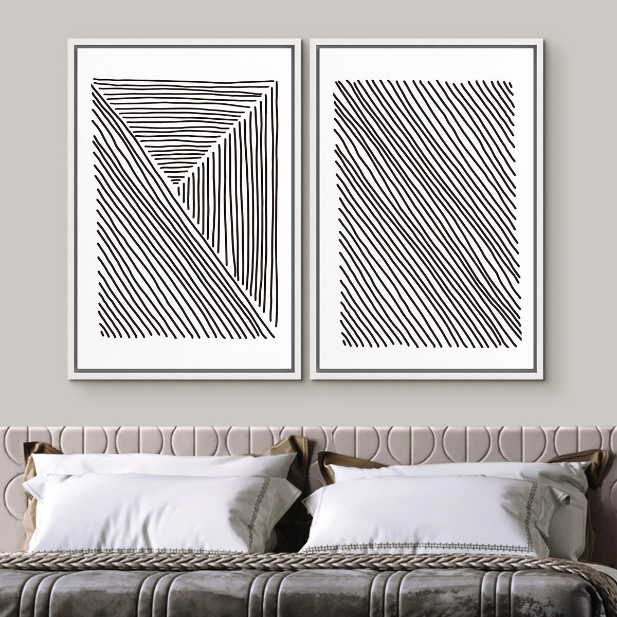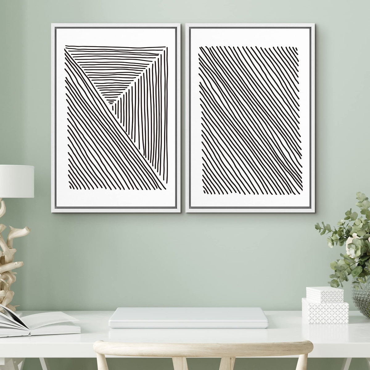 Signwin Framed Canvas Print Wall Art Set Black White Geometric Line Collage Abstract Shapes Illustrations Modern Art Decorative