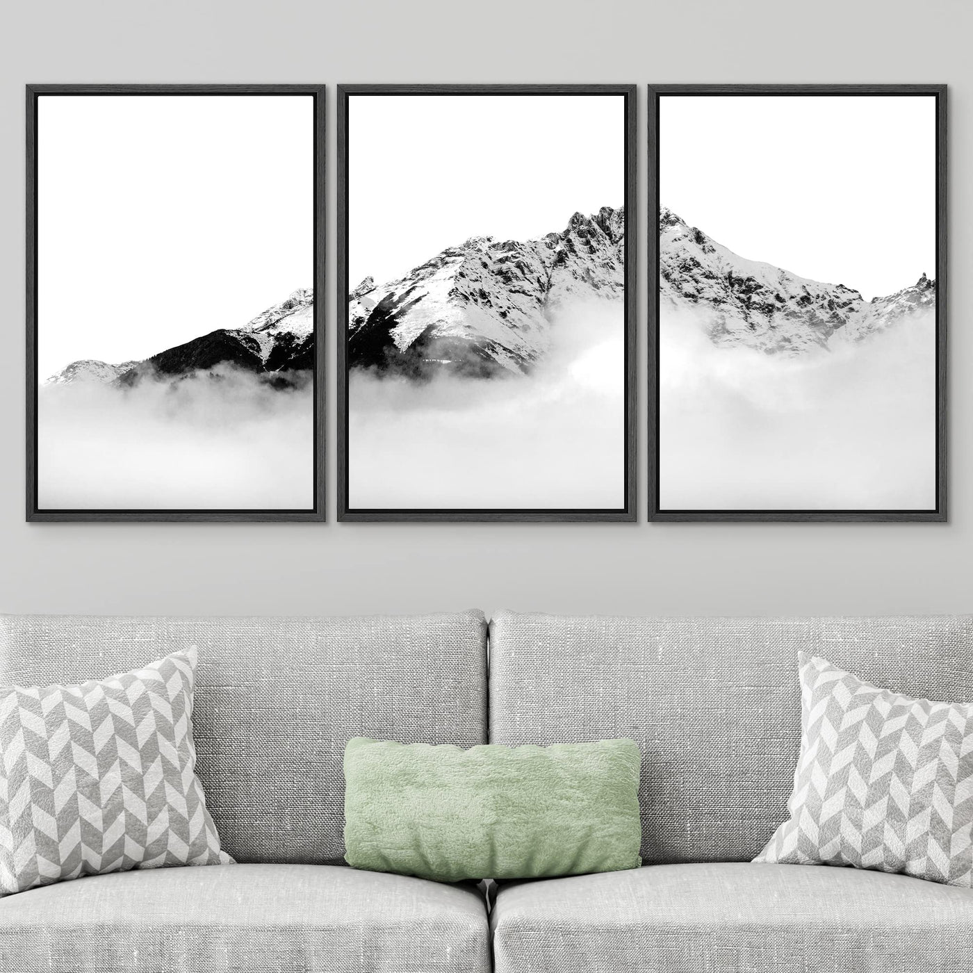 Signwin Framed Canvas Print Wall Art Set Black & White Misty Winter Mountain Snow Collage Nature Wilderness Photography Modern A