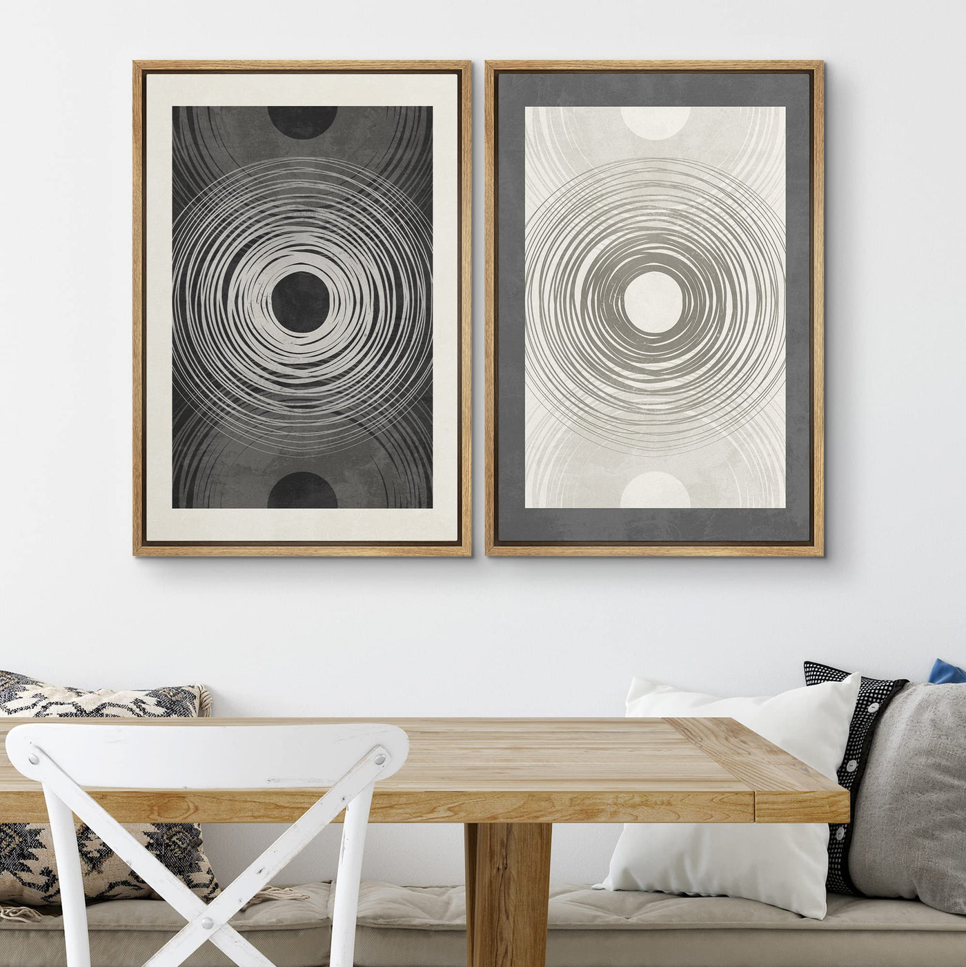 SIGNWIN Framed Canvas Print Wall Art Set Duotone Black White Geometric Ring Landscape Abstract Shapes Illustrations Minimal Decorative Bohemian for Living Room Bedroom Office - 16''x24''x2 Natural