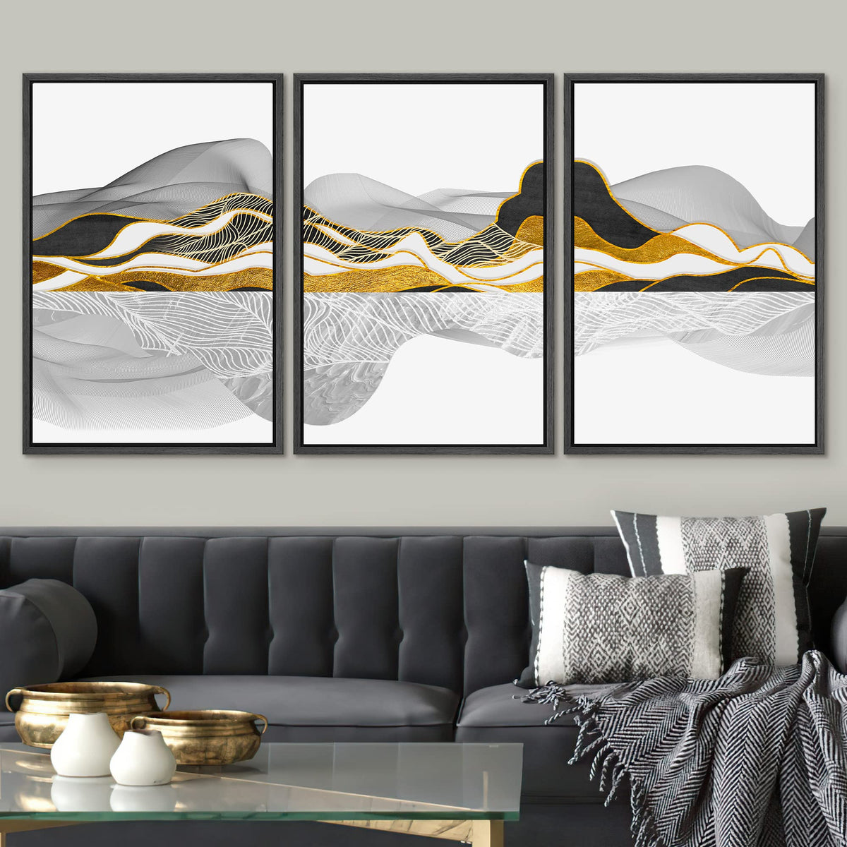 Signwin Framed Canvas Print Wall Art Set Gold Marble Wave Mountain Range Nature Wilderness Illustrations Modern Art Decorative N