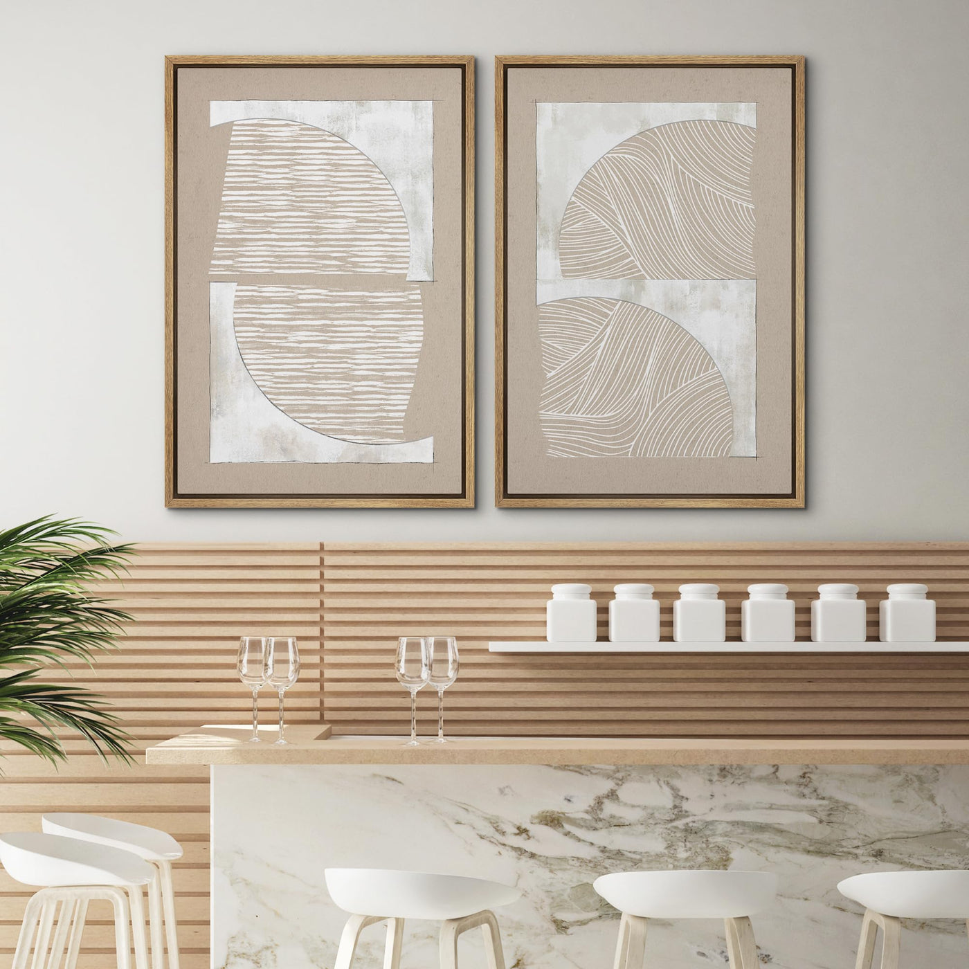 SIGNWIN Framed Canvas Print Wall Art Set Grunge Tan White Art Deco Polygons Abstract Shapes Illustrations Minimal Decorative Nordic Zen Bohemian for Living Room Bedroom Office - 24''x36''x2 Natural