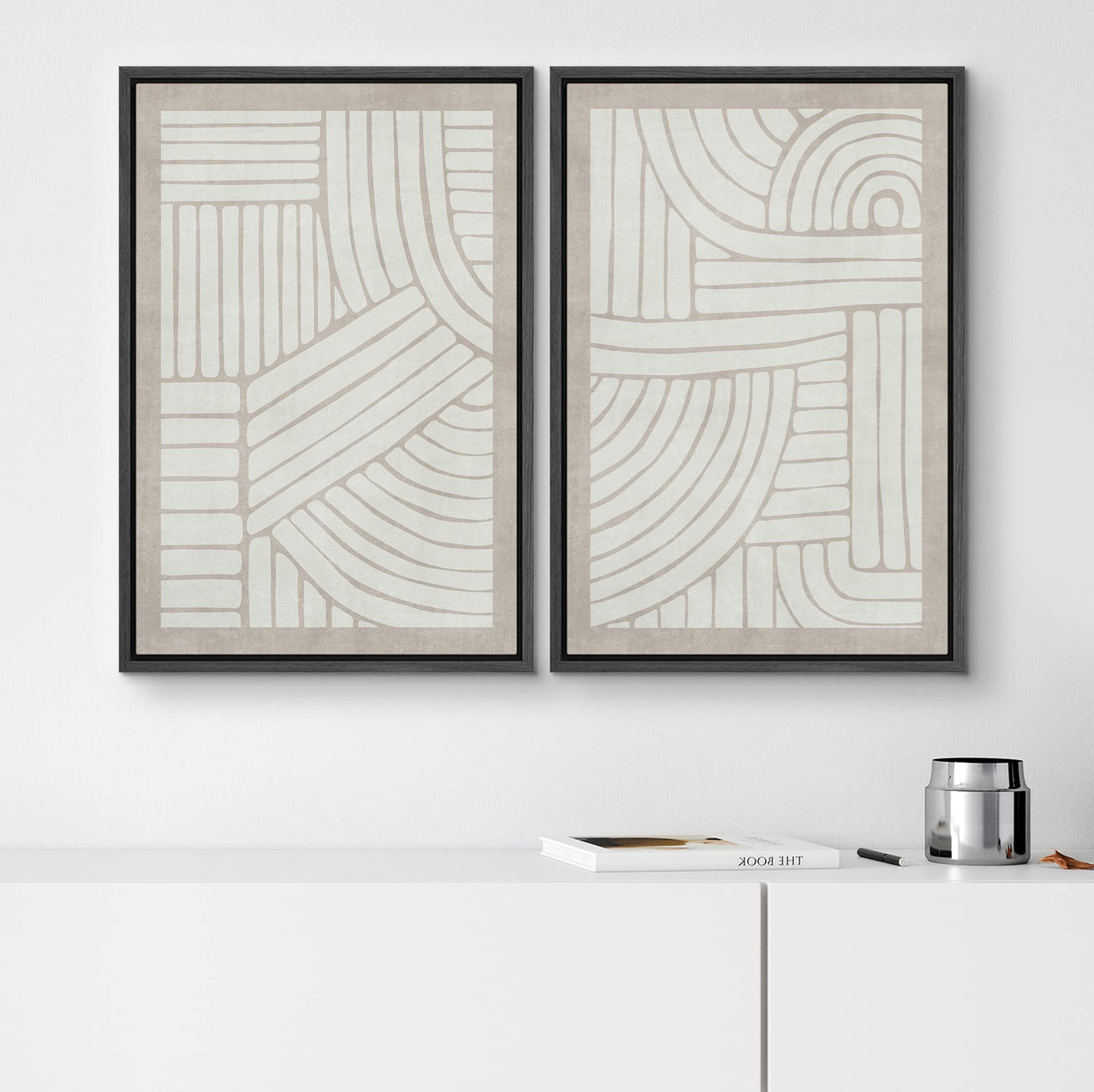 SIGNWIN Framed Canvas Print Wall Art Set Grunge Tribal Pattern Landscape Abstract Shapes Cozy Neutral Minimal Decorative Nordic Zen Bohemian for Living Room Bedroom Office - 16''x24''x2 Black