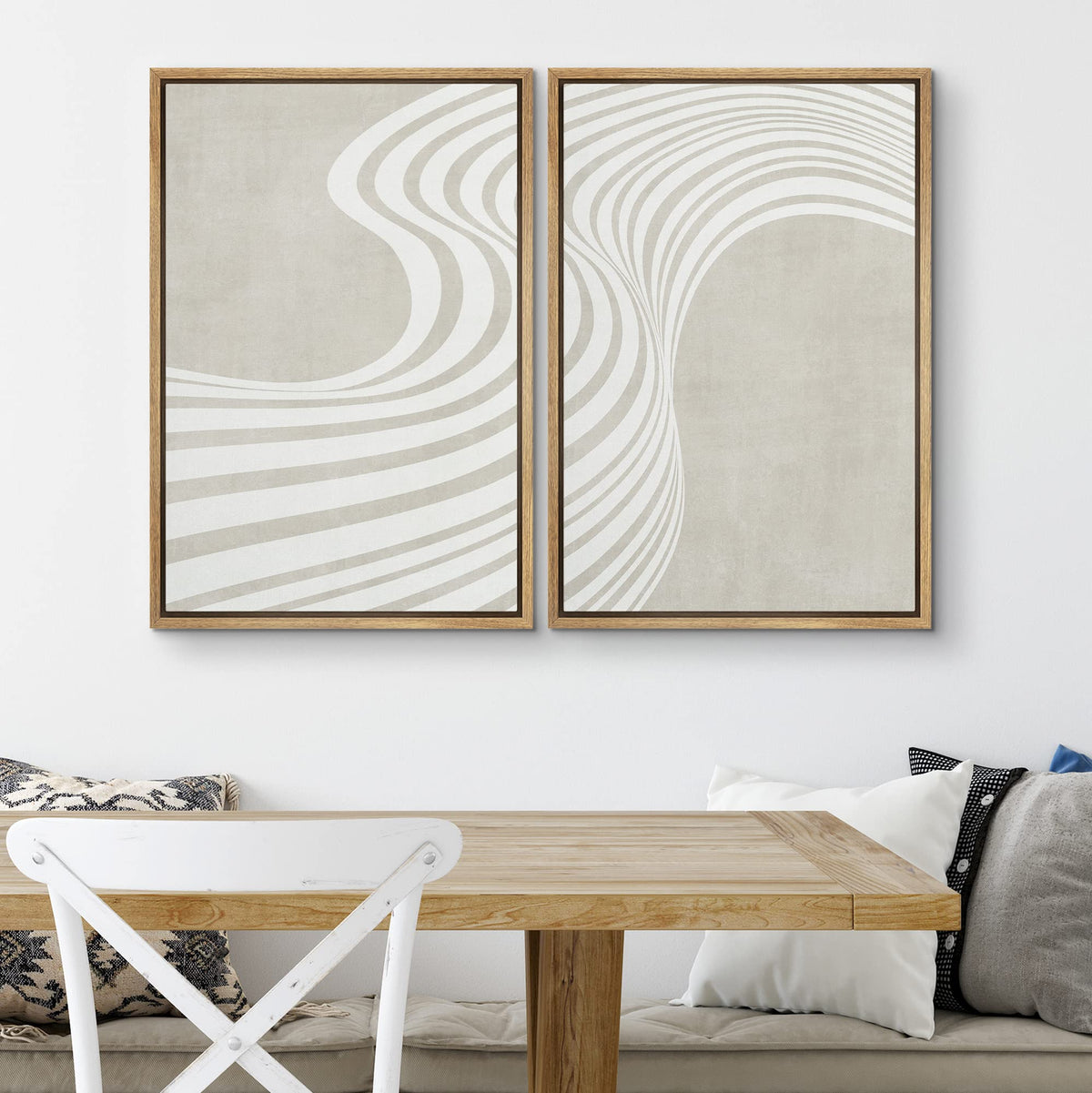 SIGNWIN Framed Canvas Print Wall Art Set Mid-Century 3D White Wave Collage Abstract Shapes Cozy Neutral Minimal Decorative Nordic Zen Bohemian for Living Room Bedroom Office - 16''x24''x2 Natural