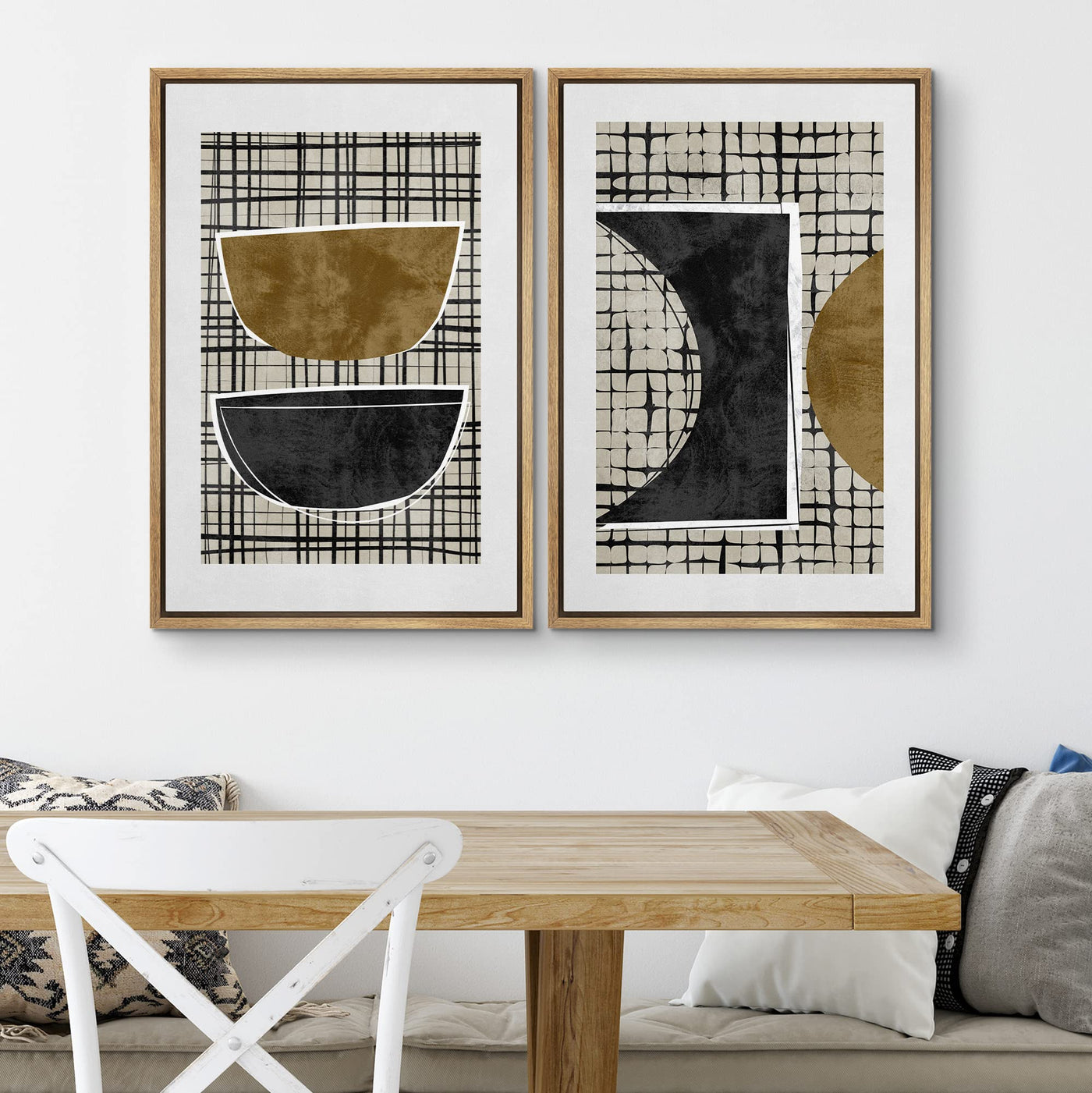 SIGNWIN Framed Canvas Print Wall Art Set Mid-Century Art Deco Dark Geometric Collage Abstract Shapes Illustrations Minimal Decorative Bohemian for Living Room Bedroom Office - 16''x24''x2 Natural