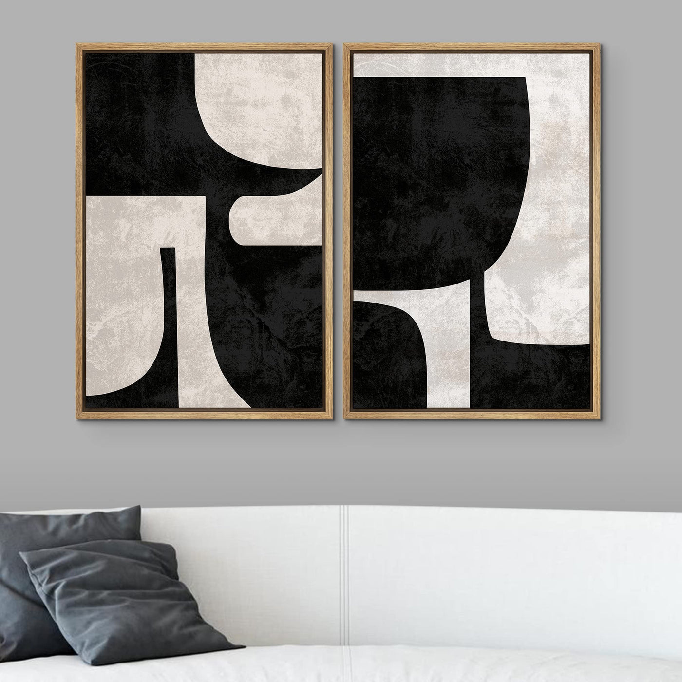 Signwin Framed Canvas Print Wall Art Set Mid-Century Black Polygon Variety Abstract Shapes Illustrations Modern Art Decorative C